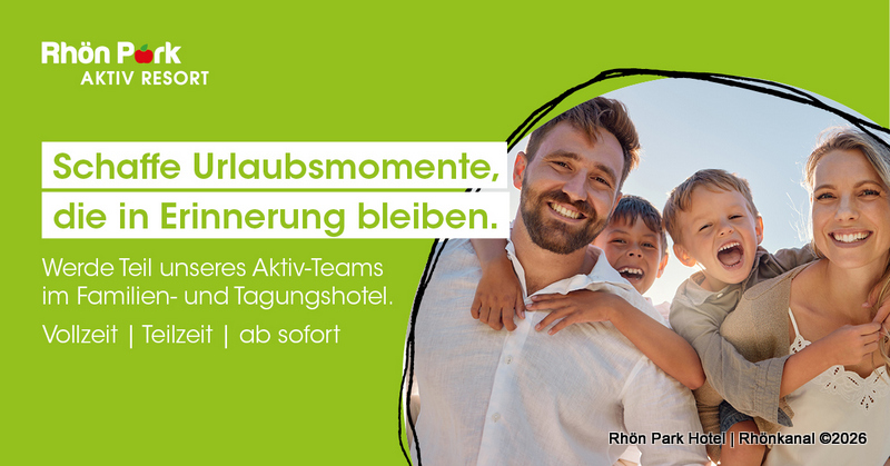 Mitten in der Natur der Rhön begeistert das Rhön Park Aktiv Resort in Hausen/Roth Familien mit Erlebnisbad, Aktivprogramm und herzlichem Service. Damit Gäste unvergessliche Urlaubsmomente erleben, sucht das Resort Verstärkung.