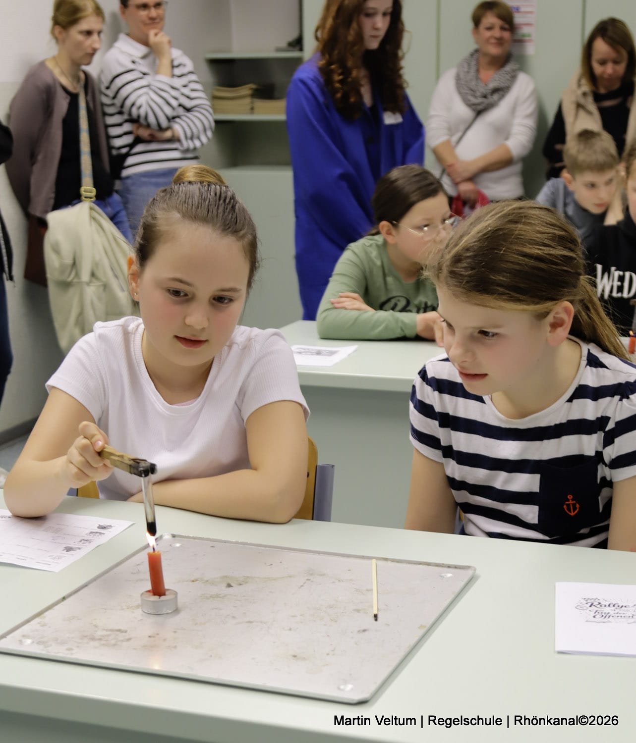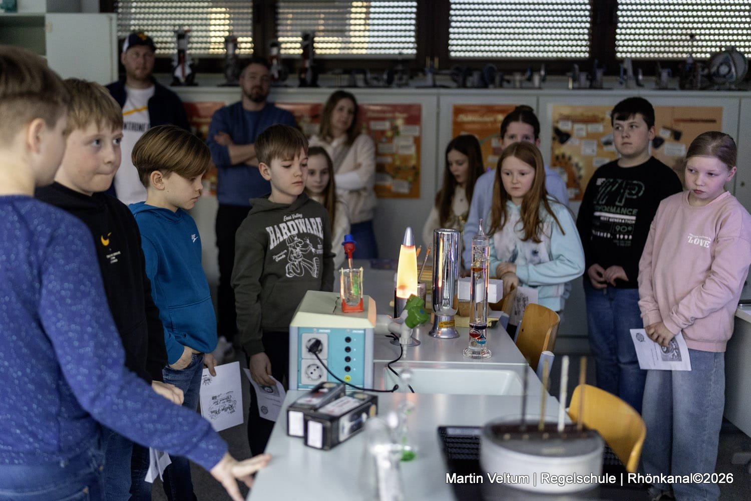 Im Chemieraum wurden die Sicherheitseinrichtungen anschaulich vorgestellt, und die jungen Gäste durften in kleinen Teams selbst experimentieren – selbstverständlich unter fachkundiger Anleitung.