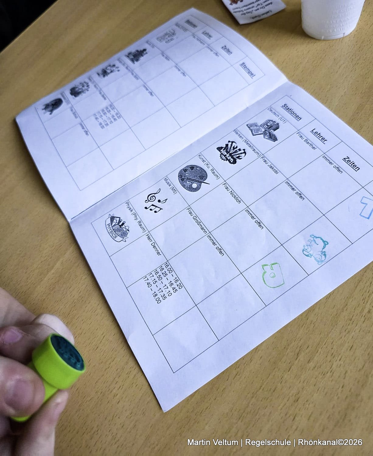 Jedes Kind erhielt zu Beginn einen „Laufzettel“, auf dem alle zehn Stationen, Räume und Lehrkräfte vermerkt waren.