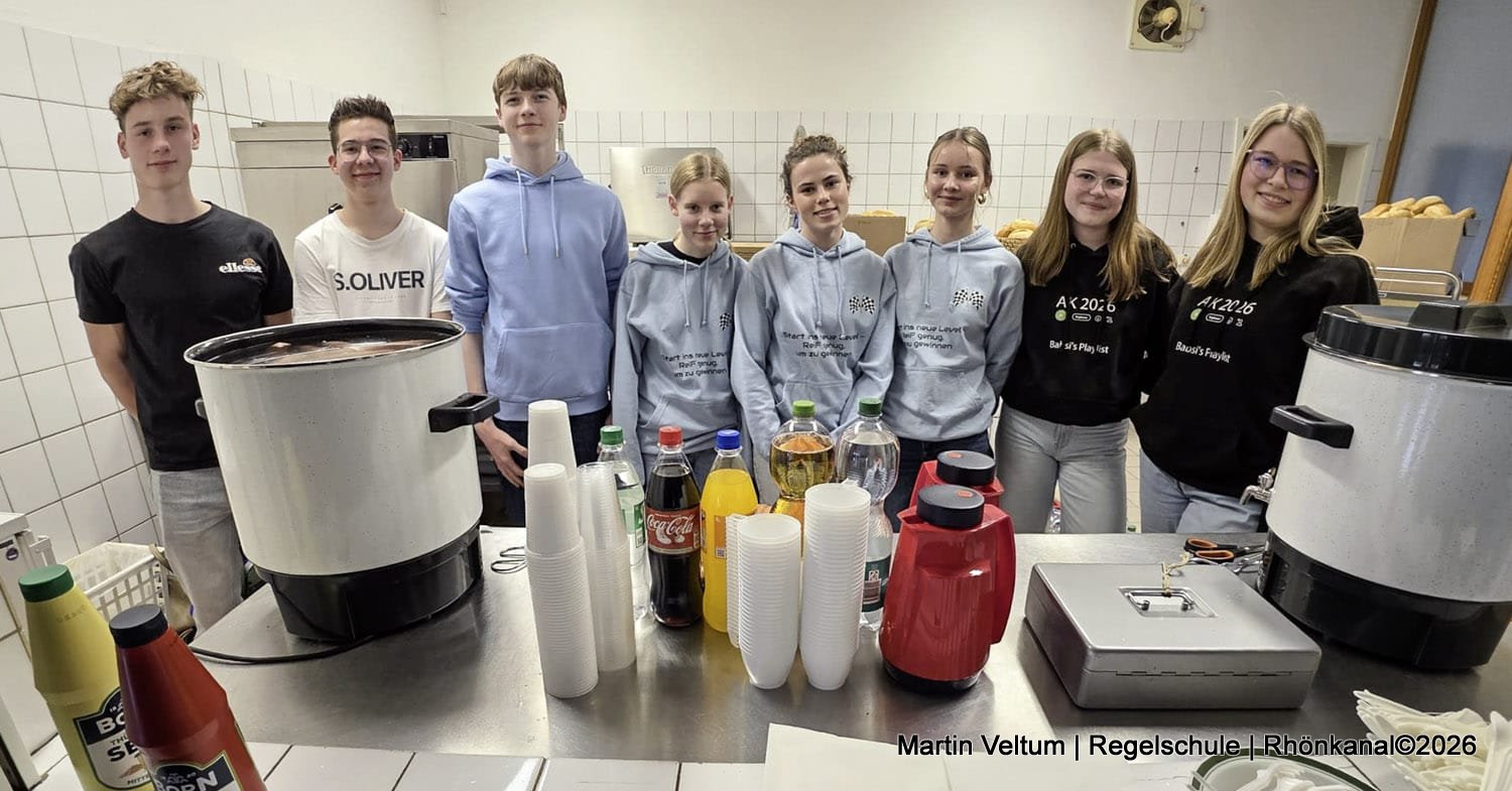 Für das leibliche Wohl sorgte das Rhön-Café im Mehrzweckgebäude mit Kaffee, Kuchen, Muffins, Kaltgetränken sowie herzhaften Snacks, das von den beiden 10. Klassen geleitet wurde.