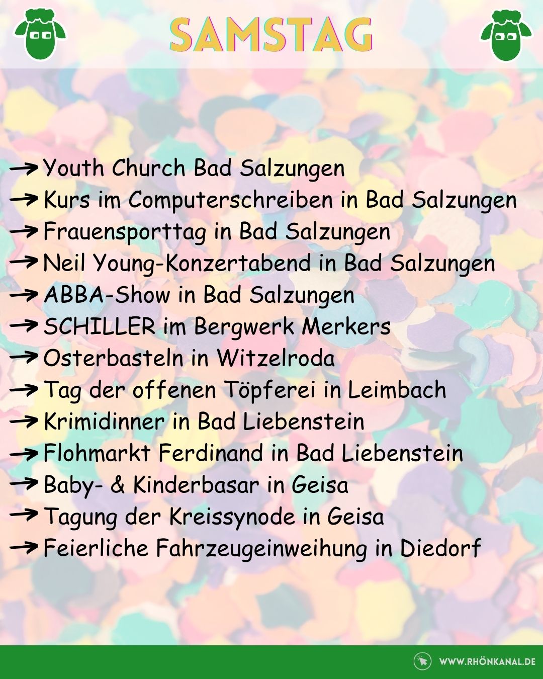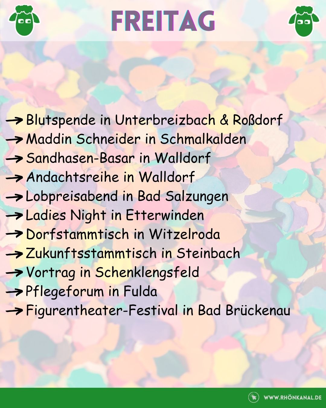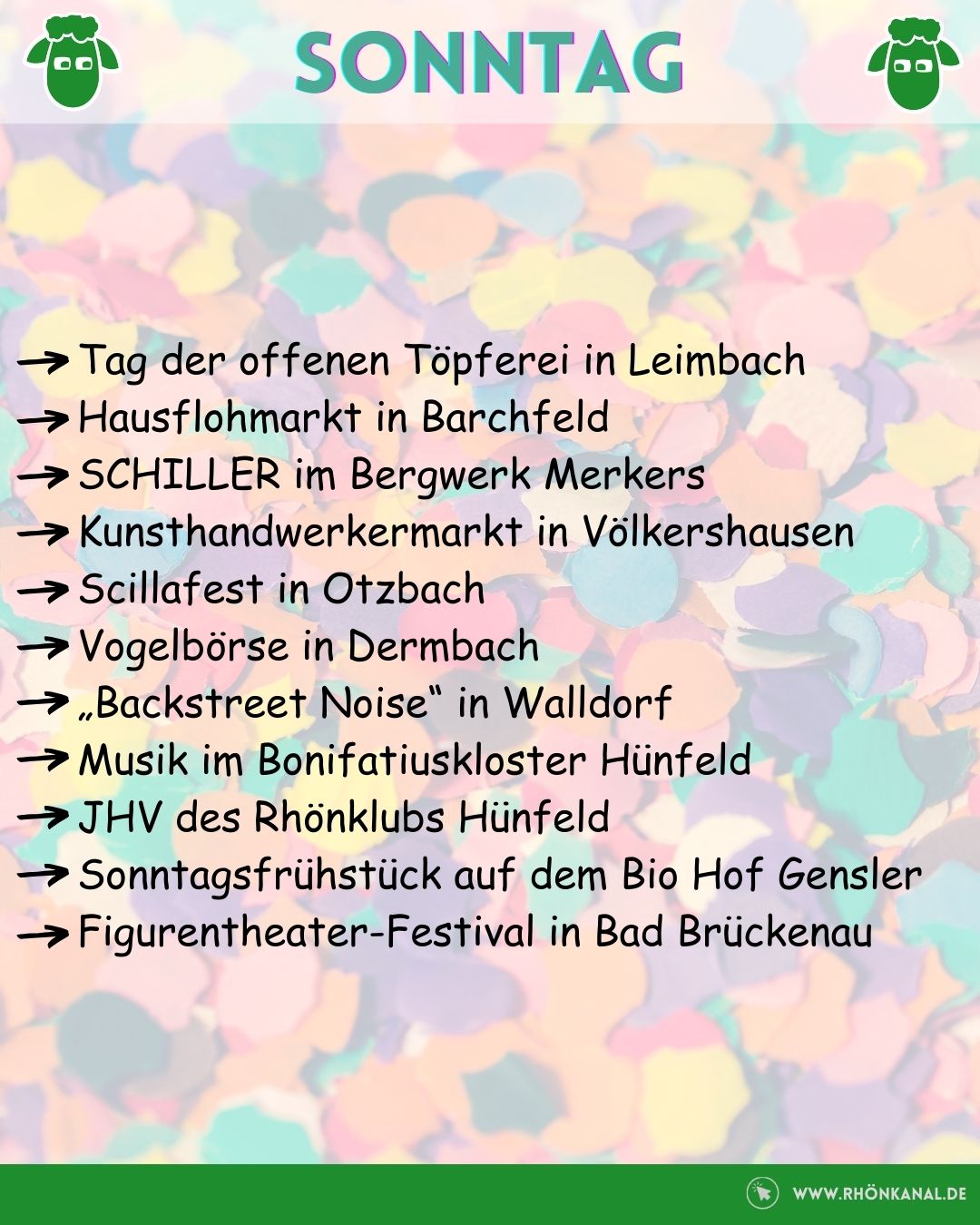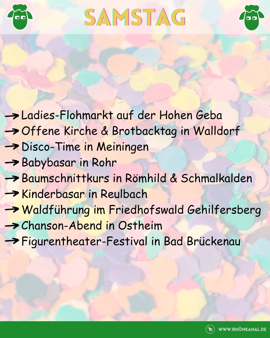 Hier gibt es wieder Veranstaltungstipps für ein abwechslungsreiches Wochenende in der Rhön! Ob kleine und große Schatzsucher beim Flohmarkt, musikalische Highlights oder kulturelle Veranstaltungen – hier ist für jeden etwas dabei.