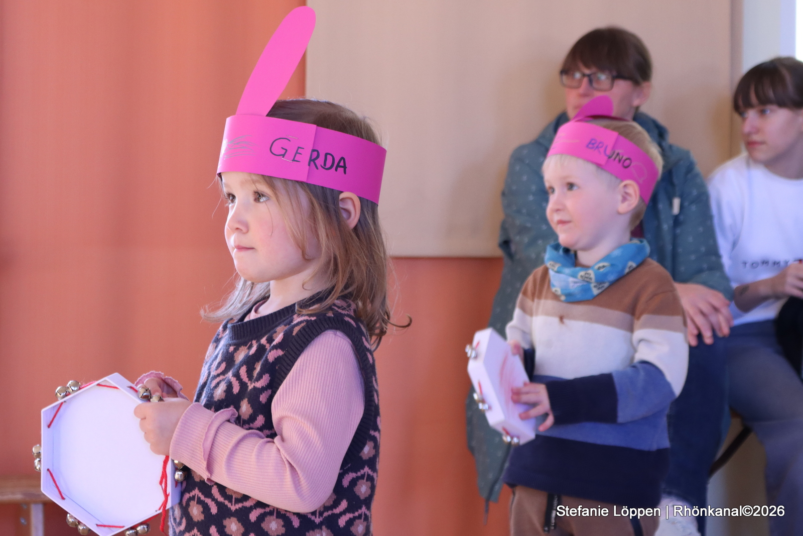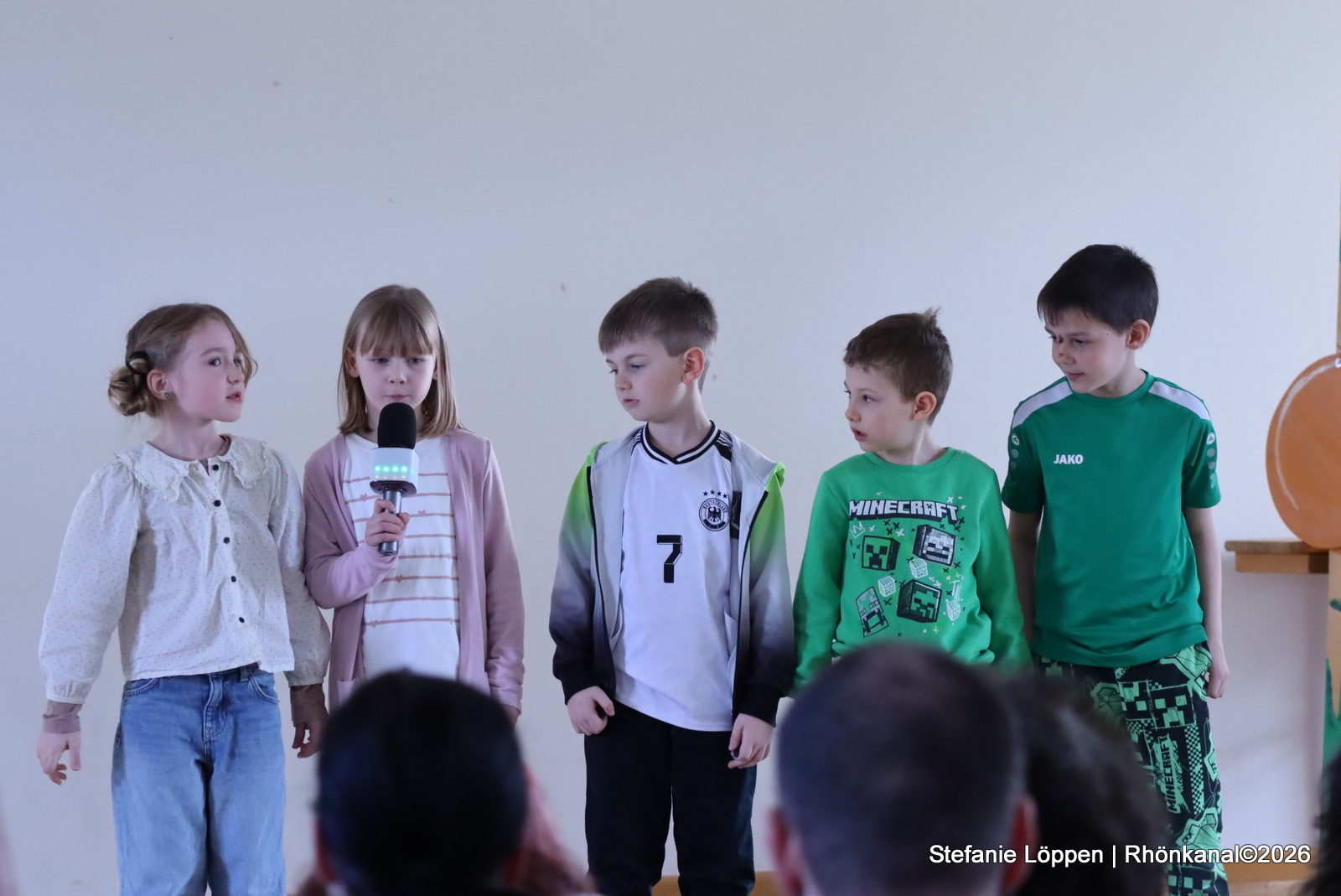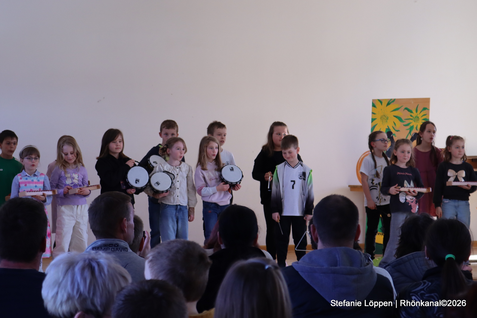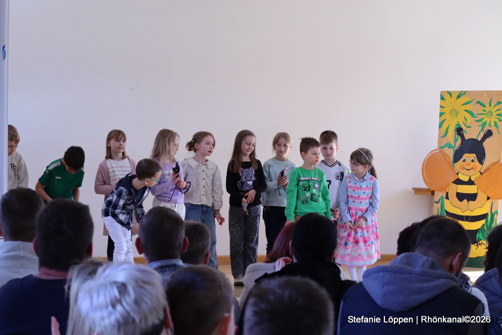 Dann gehörte die Bühne den Schülerinnen und Schülern. Alle Klassen und die Schulband unter der Leitung von Fr. Goerge, hatten etwas vorbereitet: Lieder, Gedichte und ein Streitgespräch zwischen Frühling und Winter, bei dem sich beide Jahreszeiten nichts schenkten. Draußen war es noch kalt genug, dass man beiden Seiten etwas abgewinnen konnte.