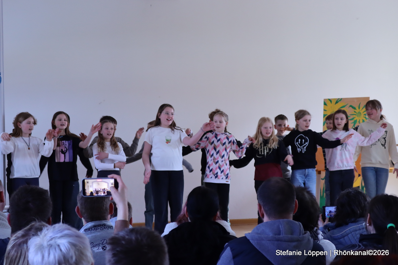 Für Schwung sorgte die vierte Klasse mit ihrem Schulter-Boogie. Die Kinder forderten das Publikum direkt zum Mitmachen auf – und tatsächlich dauerte es nicht lange, bis geklatscht und mitgemacht wurde.