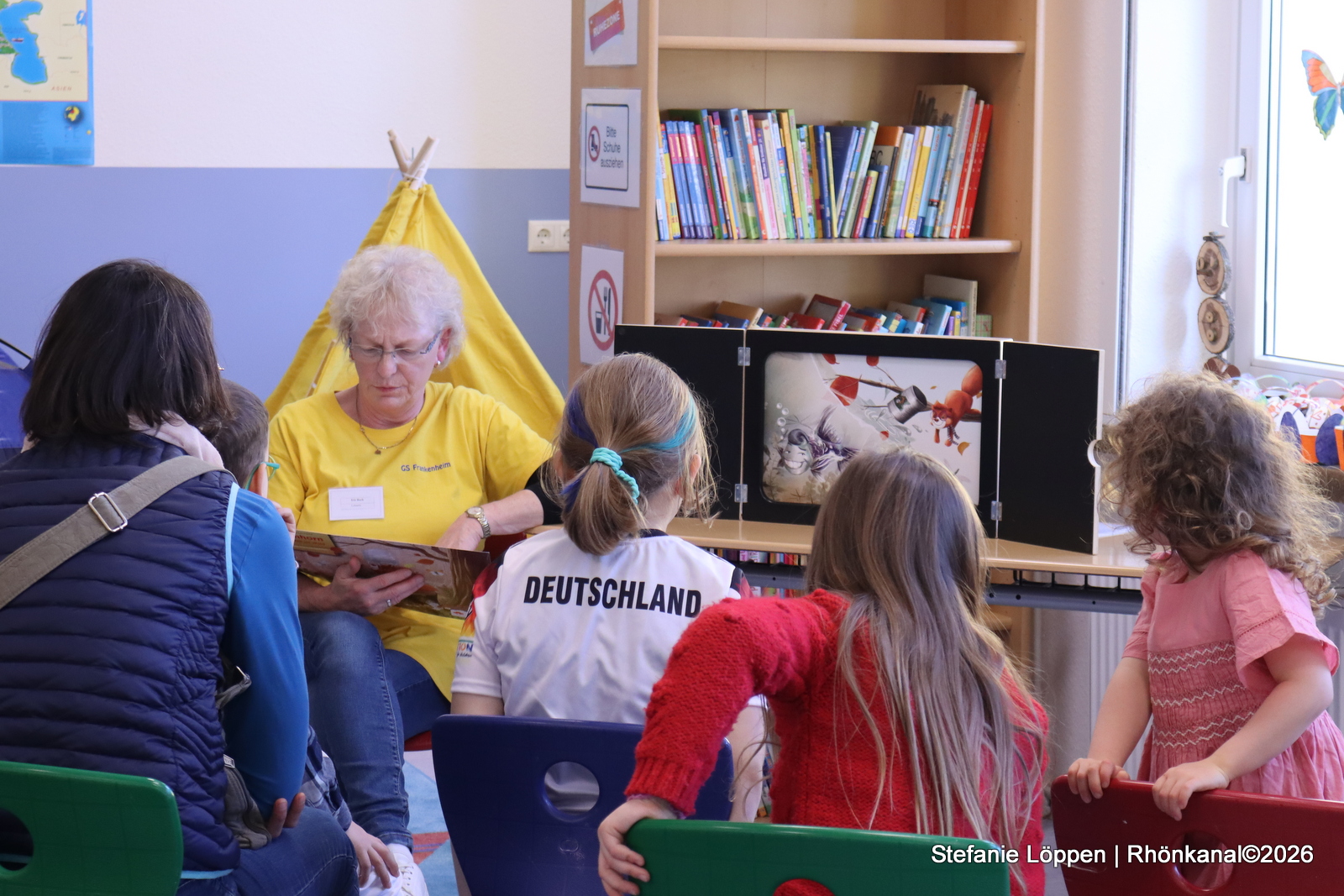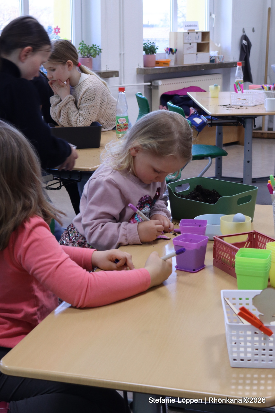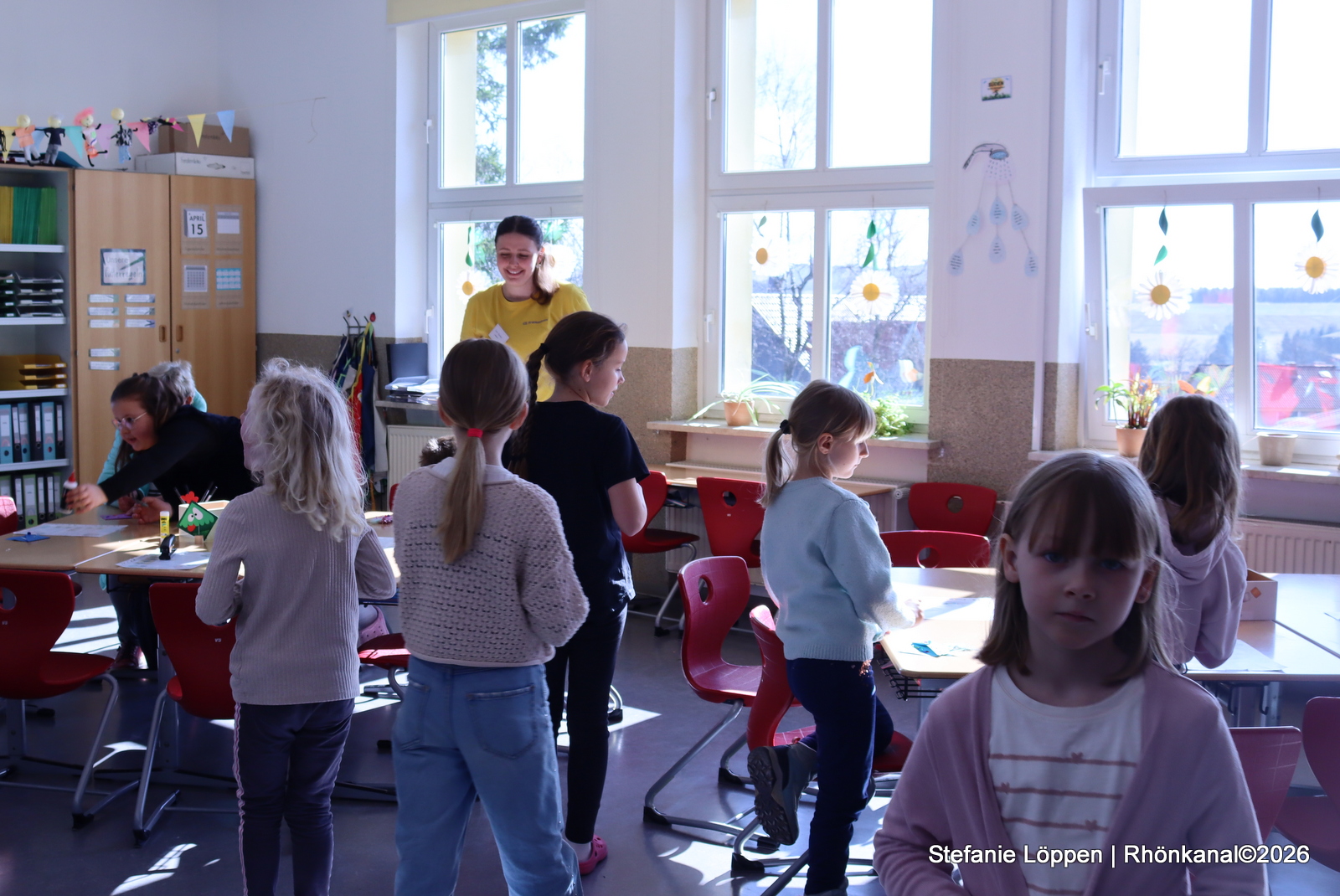 In den Klassenräumen wurde gebastelt und gesät: Kresse, Osterdeko und kleine Projekte zum Mitnehmen. In der neu eingerichteten Schulbibliothek wurde mit dem Kamishibai vorgelesen.