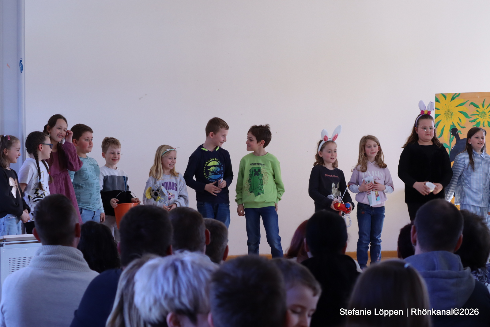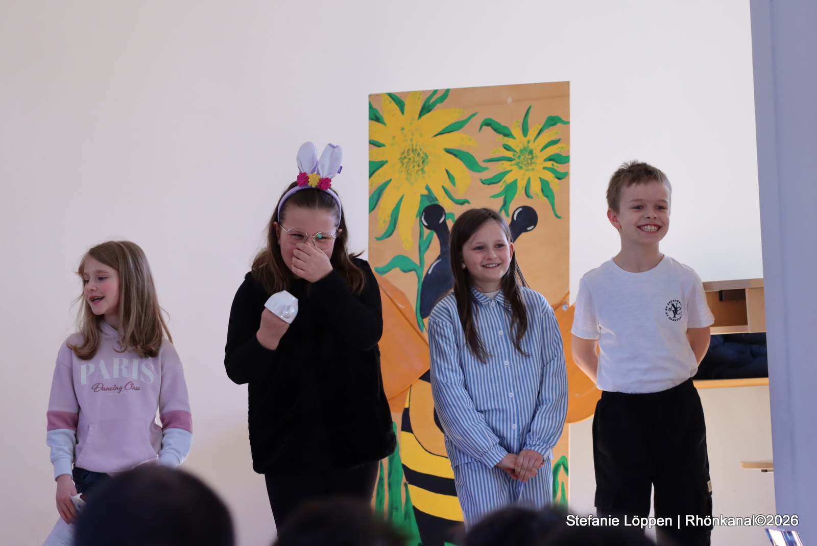 In der Aula begann der Tag mit einem kleinen Festprogramm. Durch das Programm führten Anna und Jayne aus der 4. Klasse.