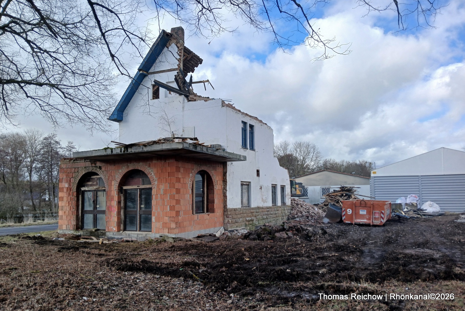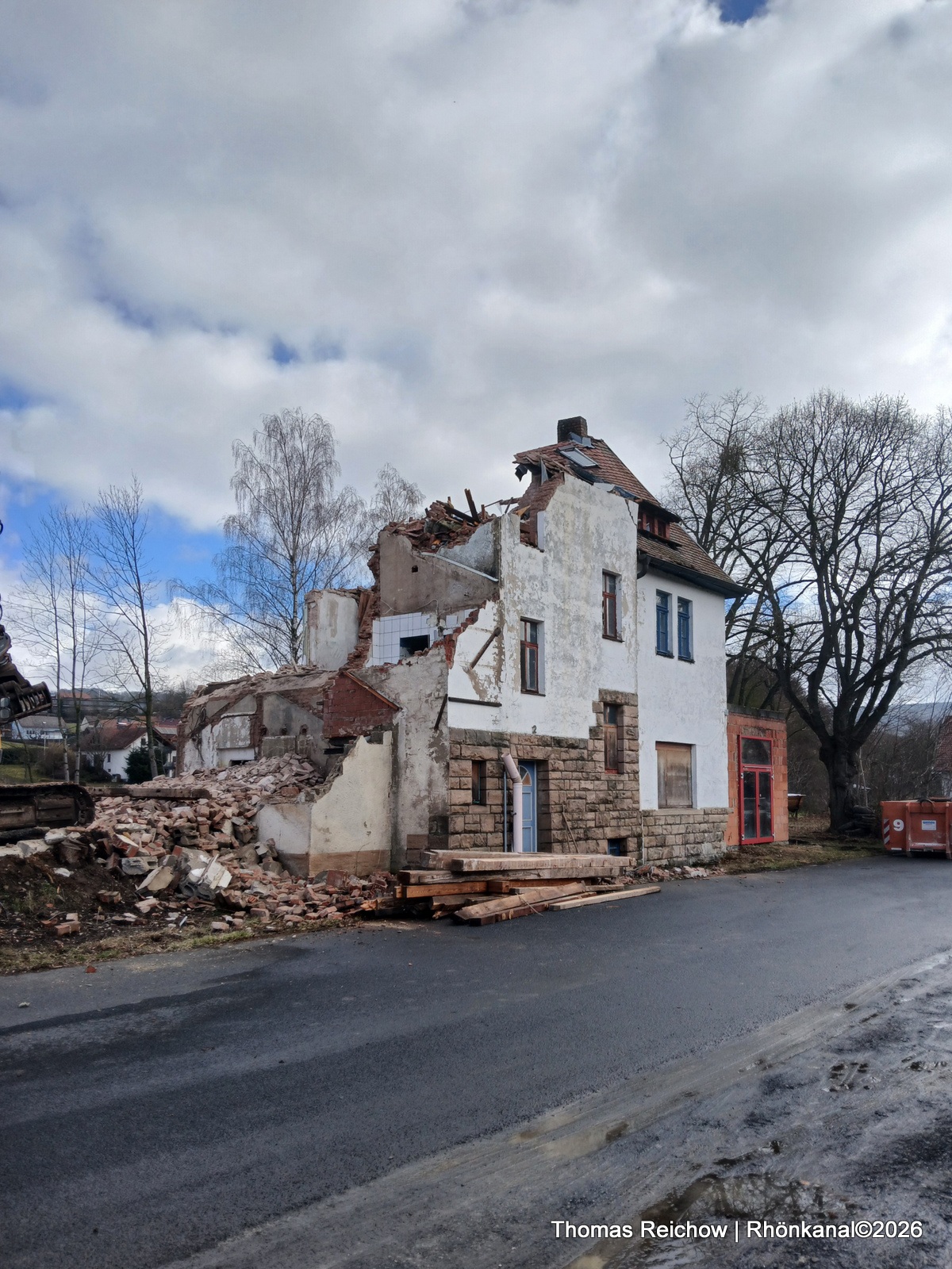 Abriss Empfangsgebäude von Günthers aus Richtung Tann gesehen (Gleisseite)
