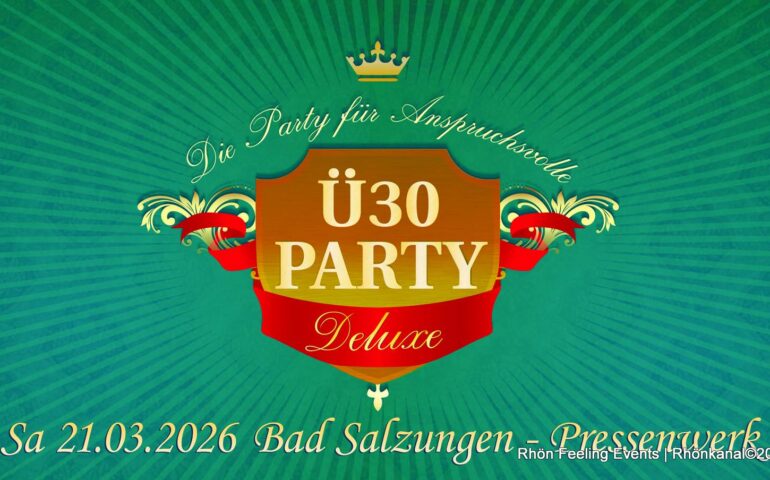 Dann kehrt die beliebte Ü30 Party Deluxe erneut nach Bad Salzungen zurück und lädt zu einer stilvollen Ausgehnacht ein. Seit vielen Jahren steht das Format „Deluxe“ für Eleganz, Atmosphäre und besondere Details.