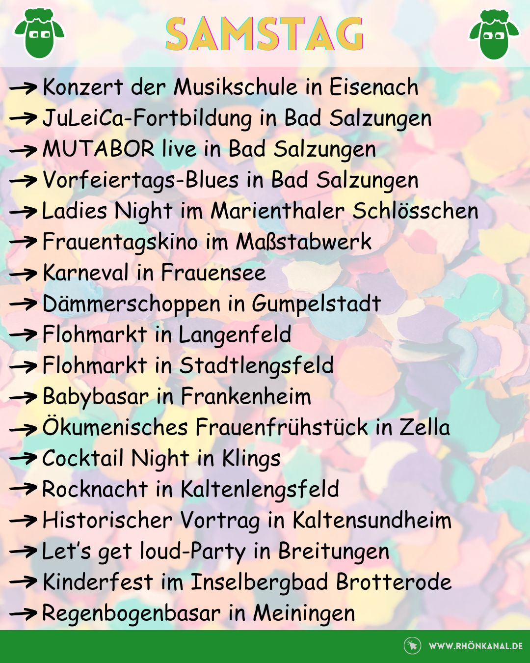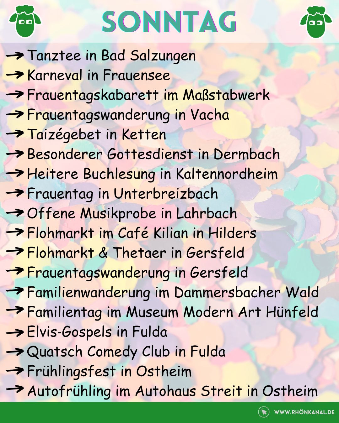 In der Rhön erwarten Euch zahlreiche Veranstaltungen, darunter eine mitreißende Rocknacht, unterhaltsames Kino, humorvolles Kabarett, ein ökumenisches Frauenfrühstück und ein schwungvoller Tanztee – ein buntes Programm, um den Tag gebührend zu feiern.