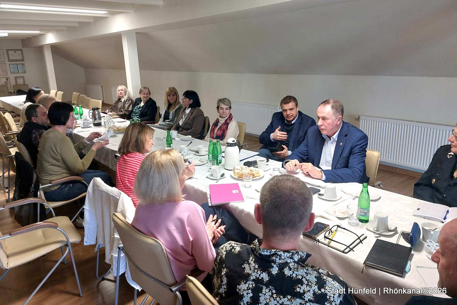 Bürgermeister Krzysztof Cebula und die Vorsitzende des Partnerschaftsvereins Proskau, Bianka Zymla, begrüßten die Hünfelder. Im Jahresplanungsgespräch am Samstag wurden gemeinsame Aktionen der beiden Städte besprochen, unter anderem standen die Gestaltung des 30-jährigen Bestehens der Städtepartnerschaft im Jahr 2027 und Schüleraustausche auf der Themenliste.