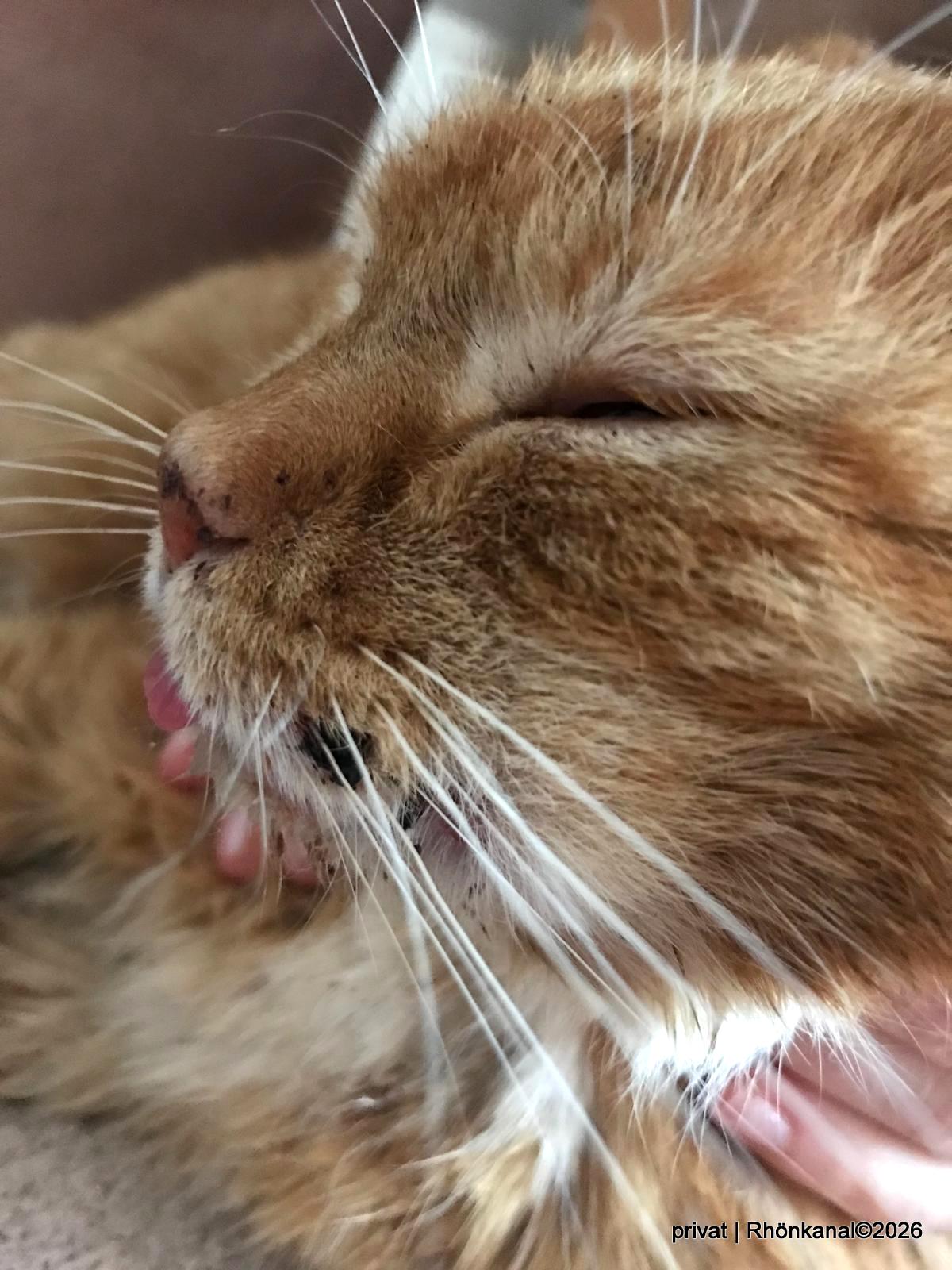 Ein Vereinsmitglied stellte mit großem Schrecken fest, dass ihr Kater Samy, der sowieso schon sehr geschwächt ist, eine Verletzung am Mund hat.