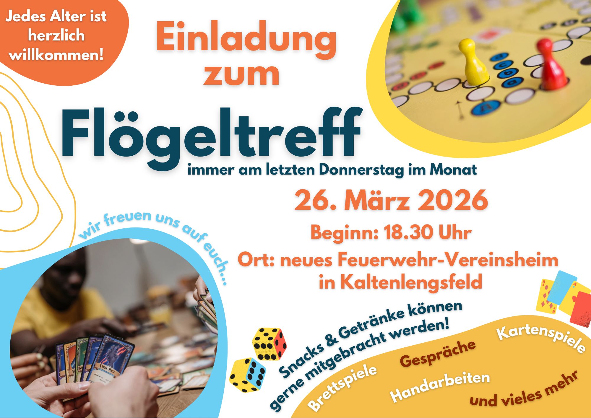 Ein letztes Mal vor der Sommerpause wird am Donnerstag, den 26. März 2026, herzlich zum Flögeltreff ins Vereinsheim der Kaltenlengsfelder Feuerwehr eingeladen.