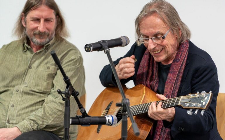 In der anschließenden Diskussionsrunde gab es neugierige Nachfragen der Besucher und die Musiker blieben keine Antwort schuldig. So hat der 73-jährige Klunker als renommierter Gitarrensolist nach der Flucht in allen Herren Ländern die Musik gespielt und die Texte gesungen, so wie es ihm gefiel.