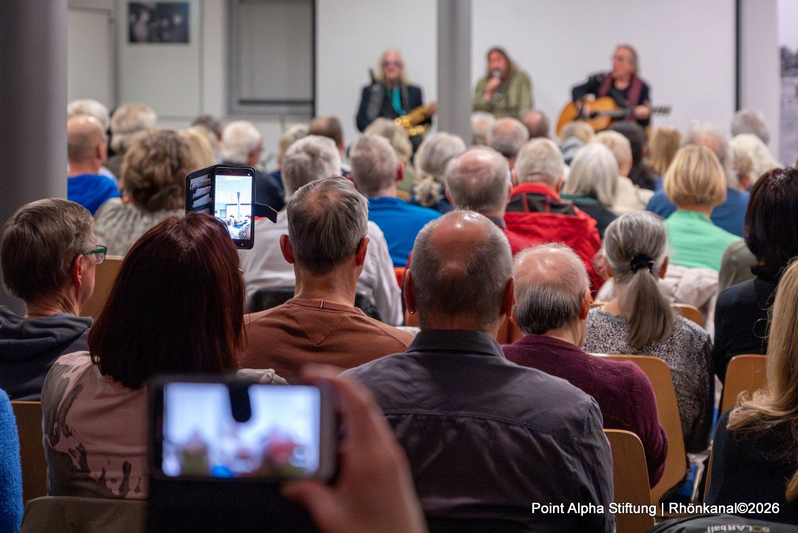 Die rund 130 Zuhörer im vollbesetzten Forum der Gedenkstätte Point Alpha lauschten aufmerksam und waren erstaunt, dass eine respektable Anzahl an Lebensringen der Virtuosität an Gitarre, Querflöte oder Saxophon scheinbar nichts anhaben kann.