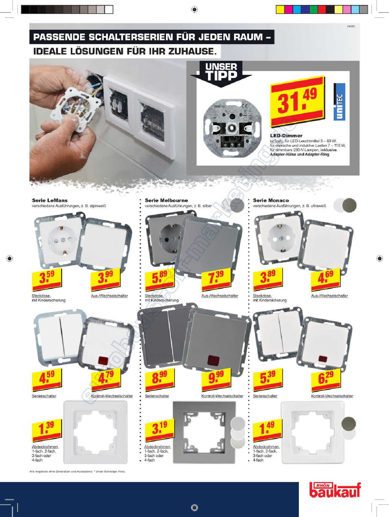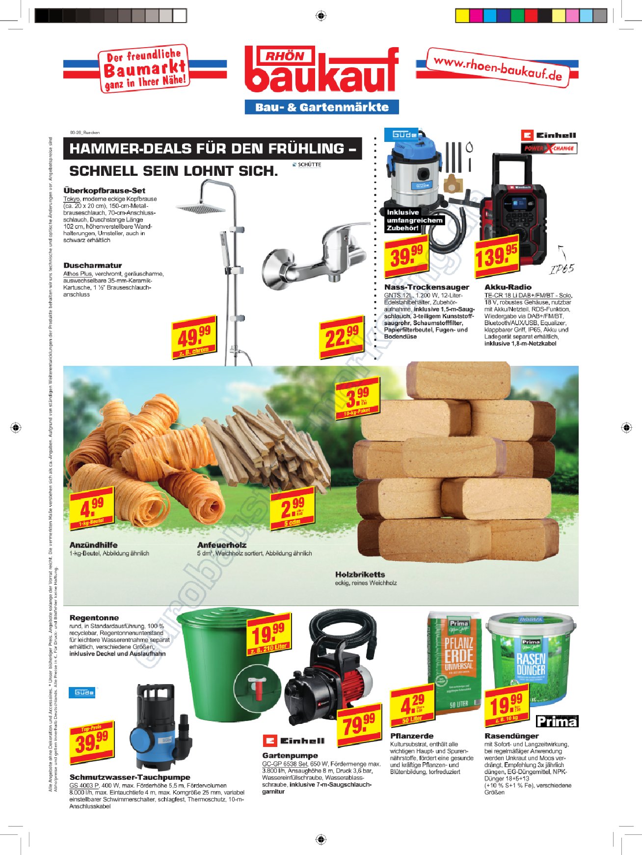 Außenanlagen, Bauelemente, Baustoffe, Eisenwaren, Elektroartikel, Farben, Fliesen, Gartensortimente, Haushaltwaren, Heizungen, Holz, Holzwerkstoffe, Lampen und Leuchtmittel, Sanitär-bedarf, Tapeten, Werkzeuge, Pflanzen und Schnittblumen, Autozubehör und vielen mehr...