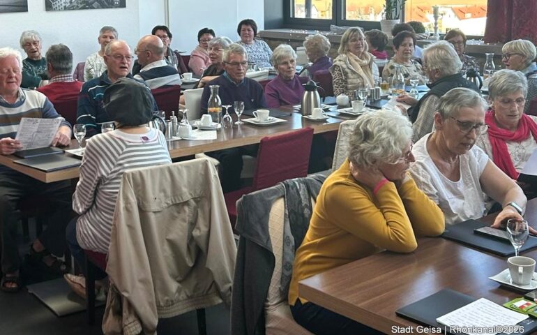 Fast 50 Seniorinnen und Senioren aus dem Geisaer Land sowie umliegenden Orten kamen, um gemeinsam mit der Seniorenbeauftragten des Wartburgkreises Elvira Fischer und Rudolf Nensel aus Otzbach am Akkordeon zu musizieren. Geisas Bürgermeisterin Manuela Henkel begrüßte die Sänger.