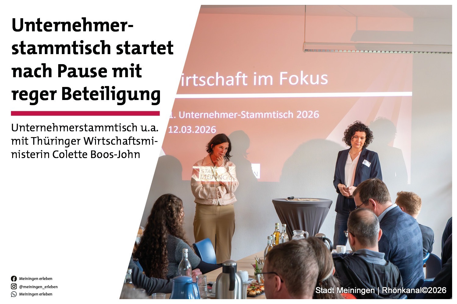 Mit dem Neustart des Formats belebt die Stadt Meiningen die erfolgreiche Veranstaltungsreihe „Wirtschaft im Fokus“ wieder, die bereits zahlreiche Unternehmen zusammengebracht und wichtige Impulse gesetzt hat.