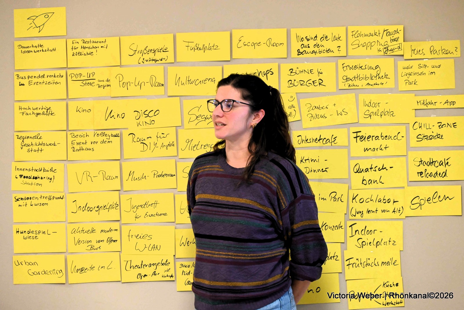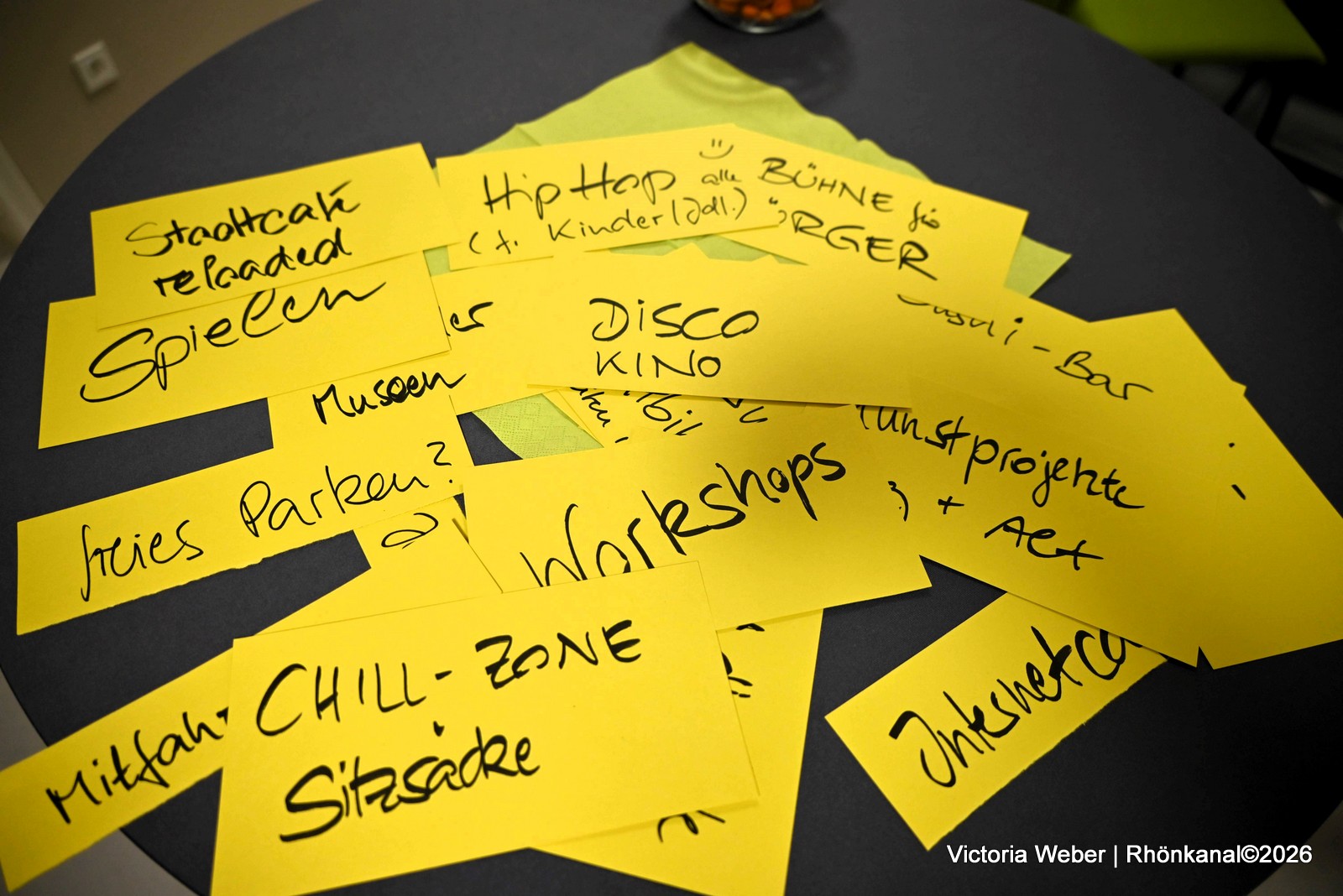 Zahlreiche Ideen wurden gesammelt: Kino, Feierabendmarkt, Hüpfburgentage, Indoorspielplatz, eine mobile Küche, Chillzone, Werkstatt-Café, Beachvolleyball, Pop-Up-Store, Krimi-Dinner, Frühstücksmeile, Quatschbank und vieles mehr.