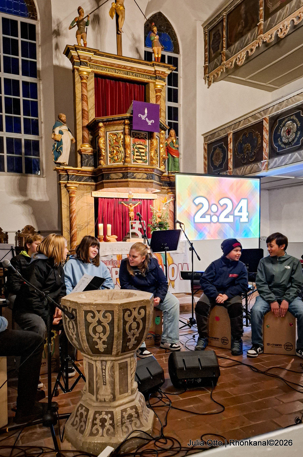 Musikalisch gestaltet wurde der Gottesdienst von Nachwuchs-Teamerinnen und -Teamern, die kürzlich den KinderLeiterKurs absolviert haben, mit ihren selbstgebauten Cajón-Boxen sowie von der Jugendband „Tehillah“.