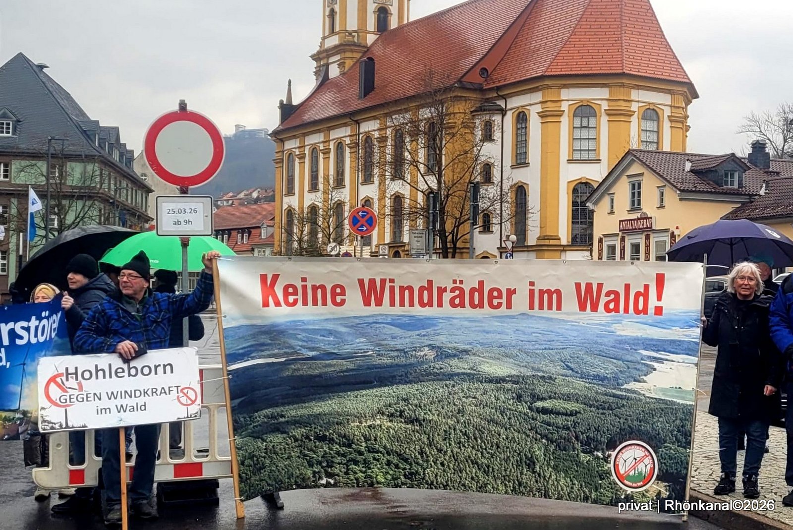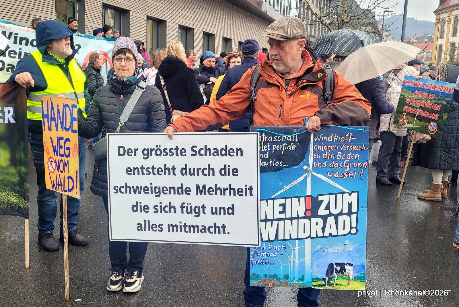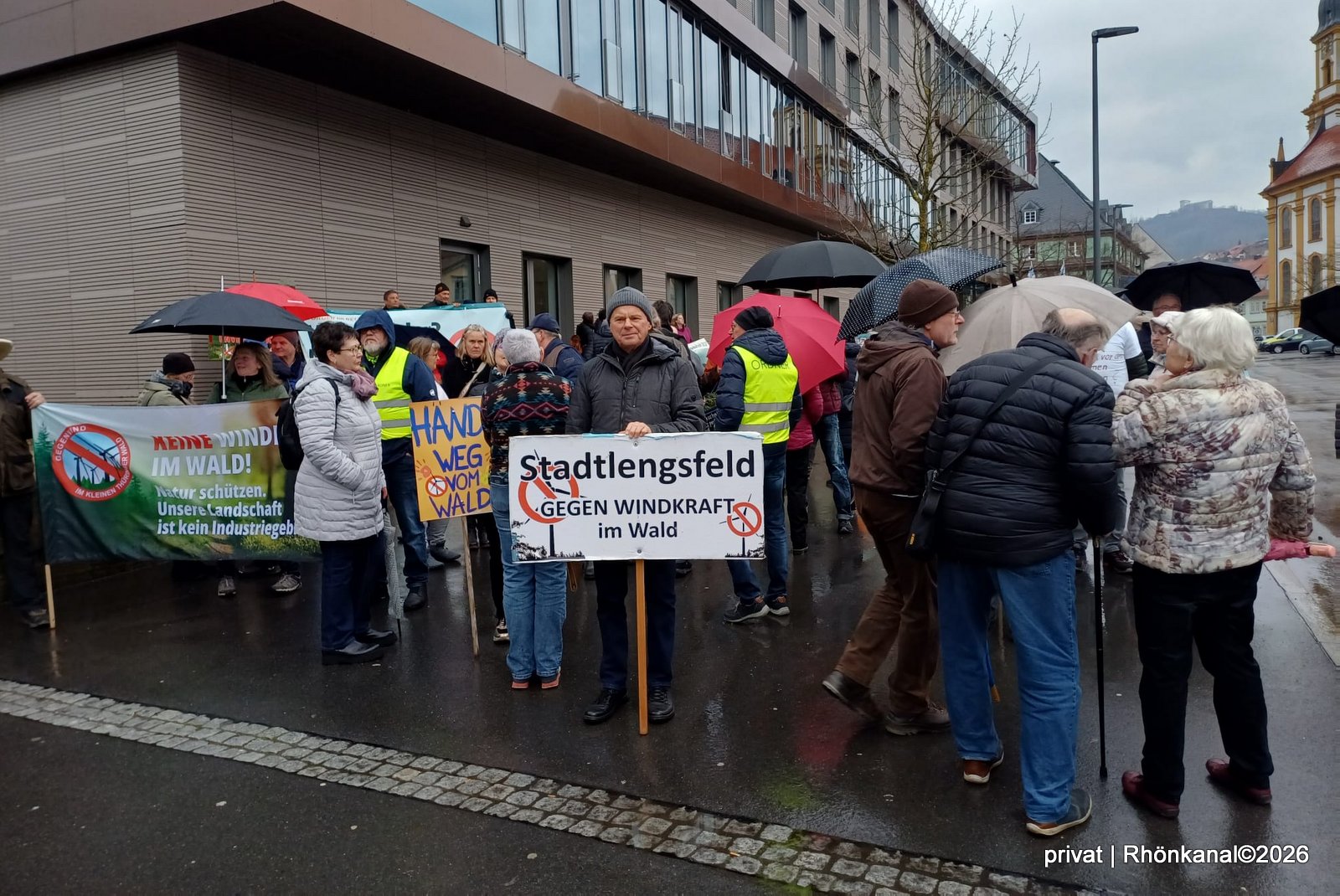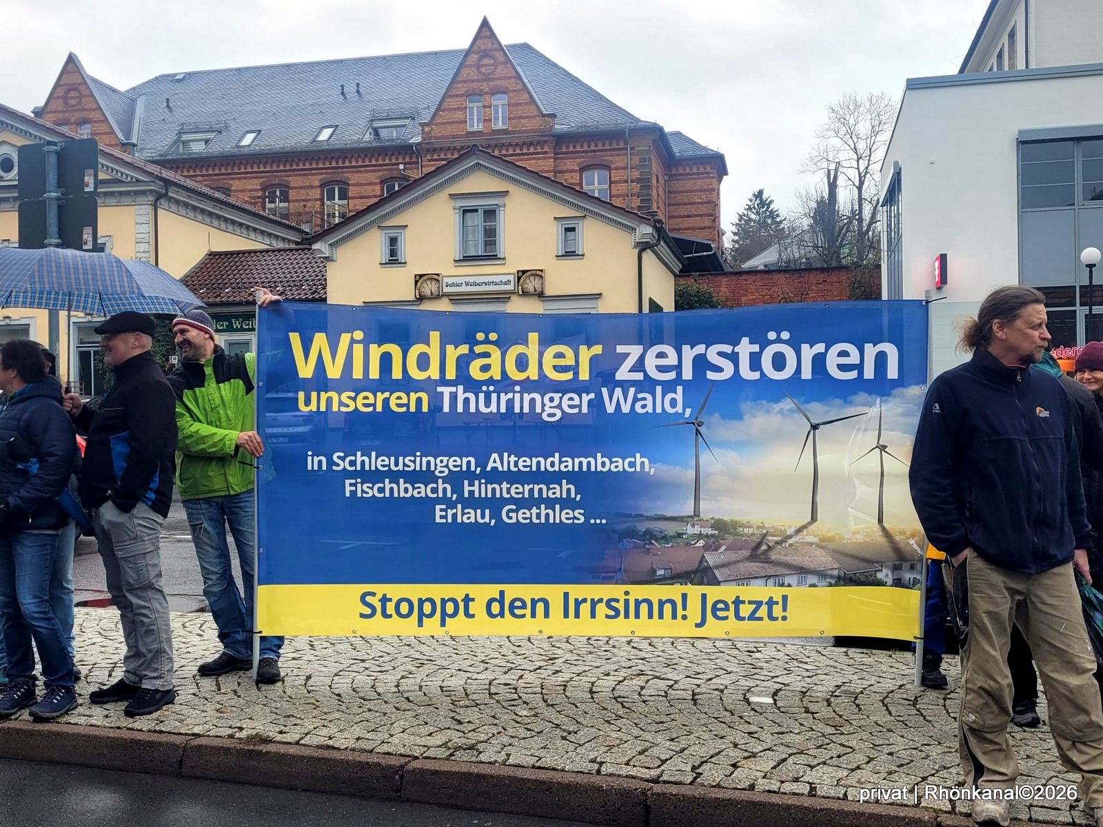 Zu einer „stillen Demo“ hatten regionale Windkraftkritiker aufgerufen. Dem folgten auch zahlreiche Teilnehmer aus der Rhön. Darunter auch Mitglieder der Stadtlengsfelder Bürgerinitiative gegen Windkraft im Wald (BI), die mit Plakaten in die Stadt im "Grünen Herzen" Deutschlands gereist waren.
