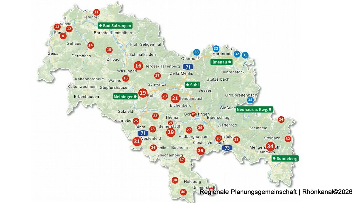 Der verabschiedete Entwurf sieht insgesamt 40 Windvorranggebiete in Südwestthüringen vor, sieben davon liegen in der Rhön. In den folgenden Gebieten sind demnach in den nächsten Jahren neue Windräder denkbar:
