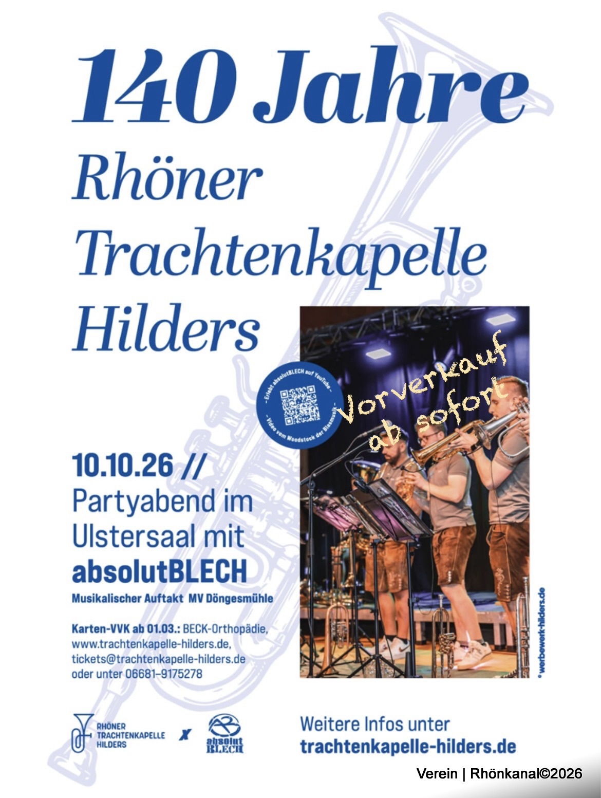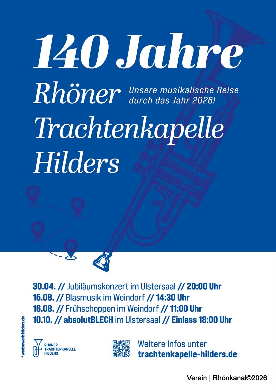 Anlässlich ihres 140-jährigen Vereinsjubiläums möchte die Rhöner Trachtenkapelle Hilders Musikbegeisterte jeden Alters mit auf eine musikalische Reise durch das Jahr 2026 nehmen.