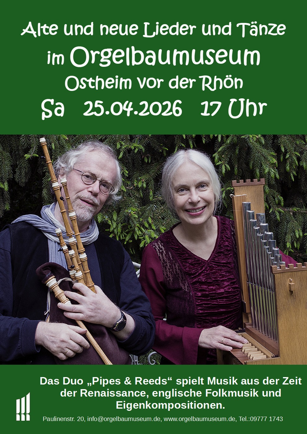 Alte und neue Lieder und Tänze im Ostheimer Orgelbaumuseum am Samstag, den 25. April um  17 Uhr.