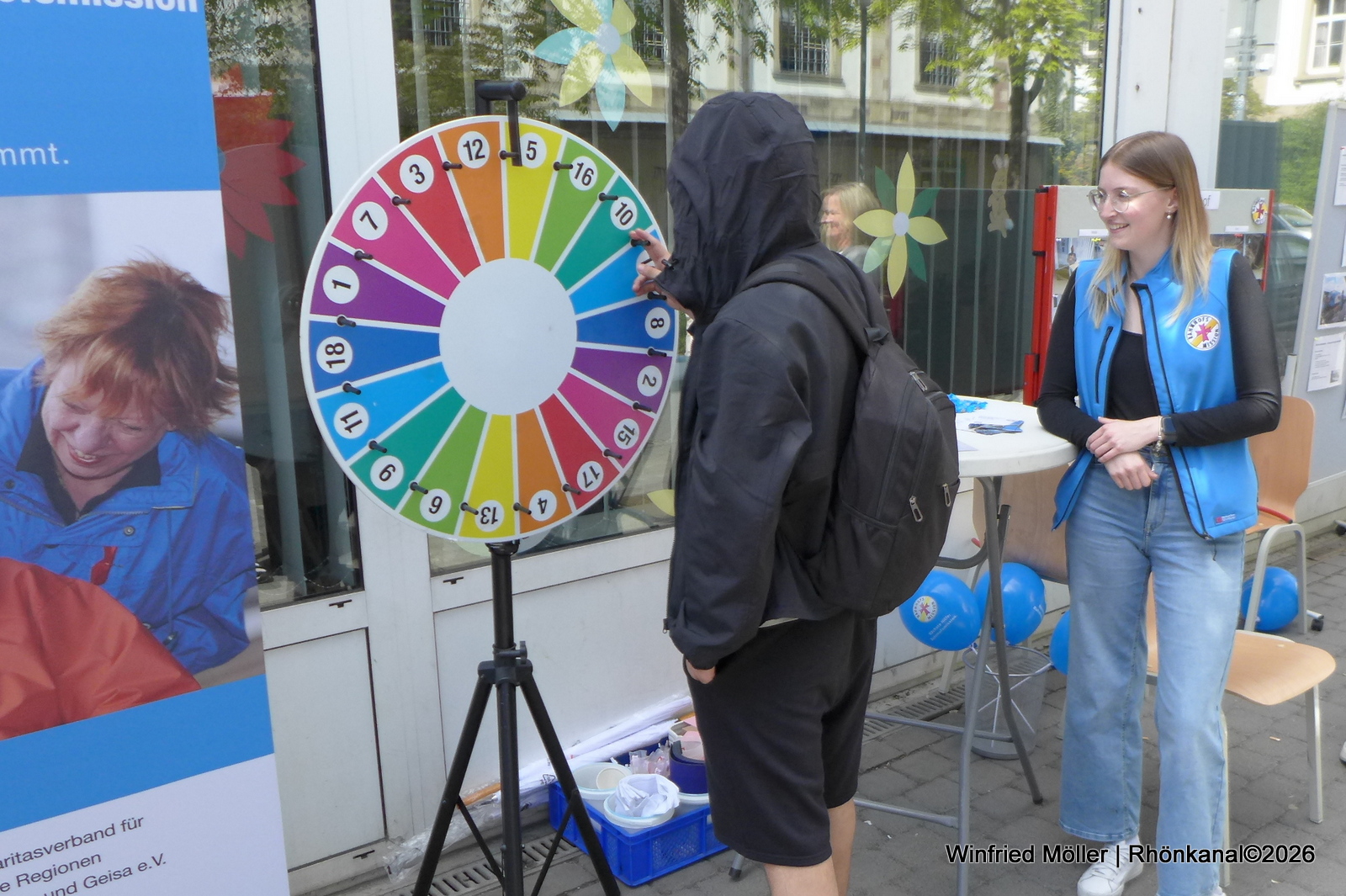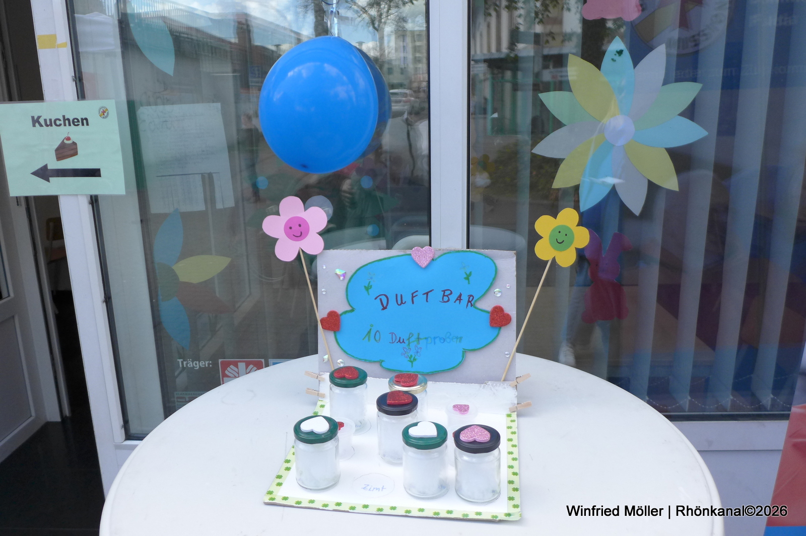 Eine Duftbar, als interaktives Angebot, lud dazu ein, den Geruchssinn anzuregen und verschiedene Düfte den richtigen Begriffen zuzuordnen. Das „Glücksrad“ war ebenso gefragt, da es Preise wie Zahnbürsten, Pflaster oder Regenschirme zu gewinnen gab.