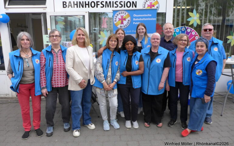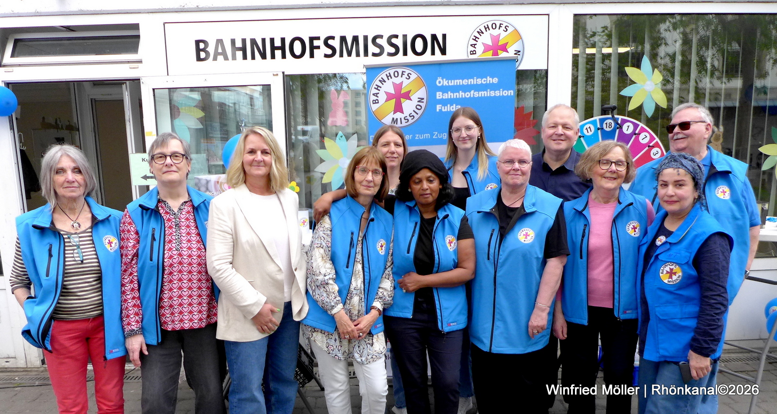 Die Bahnhofsmission Fulda ist eine der wenigen Bahnhofsmissionen in Deutschland, die, außer der koordinierenden Caritas Mitarbeiterin Annika Ettrich, ihre Dienste überwiegend mit ehrenamtlich engagierten Mitarbeitenden leistet.