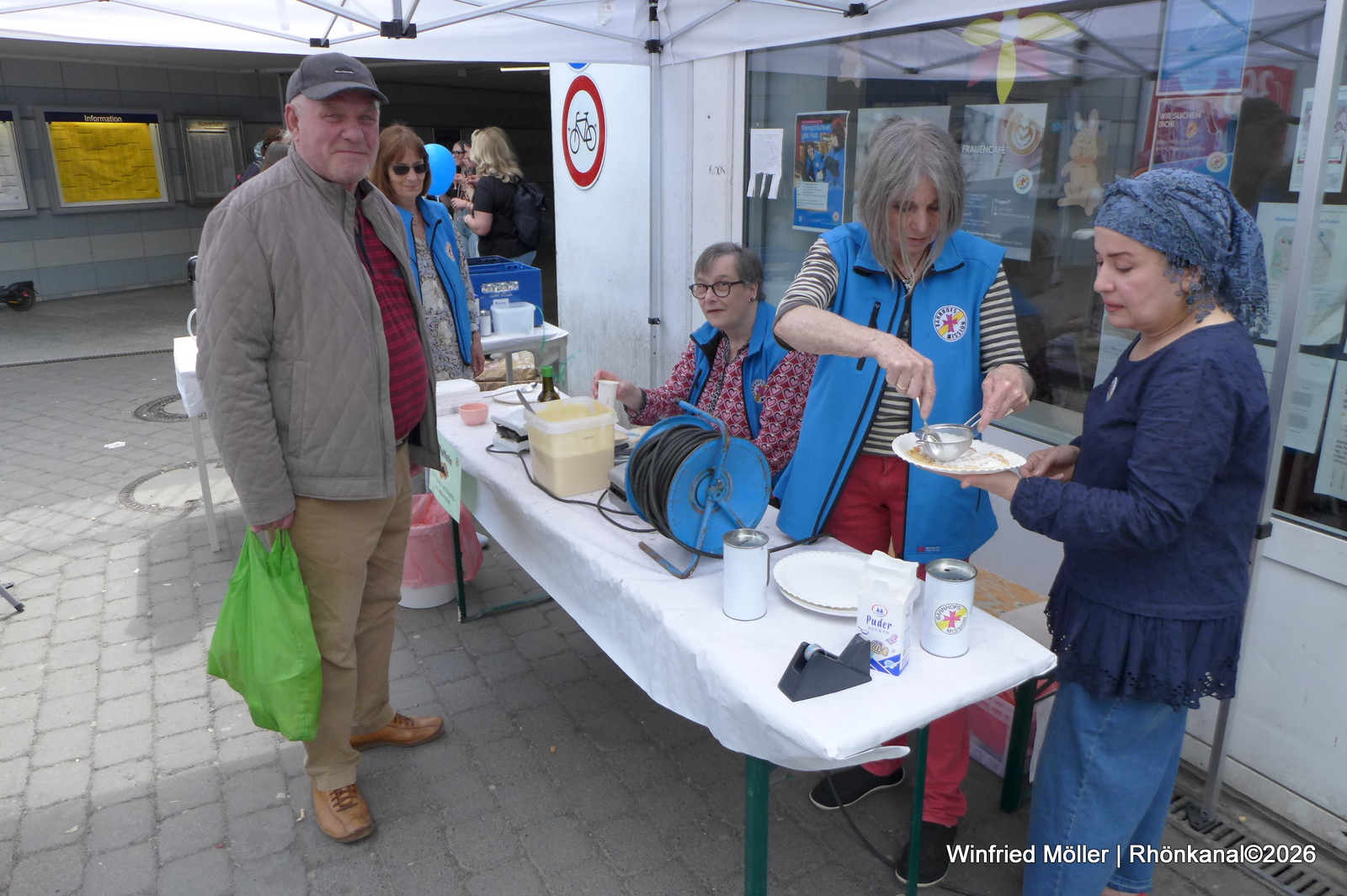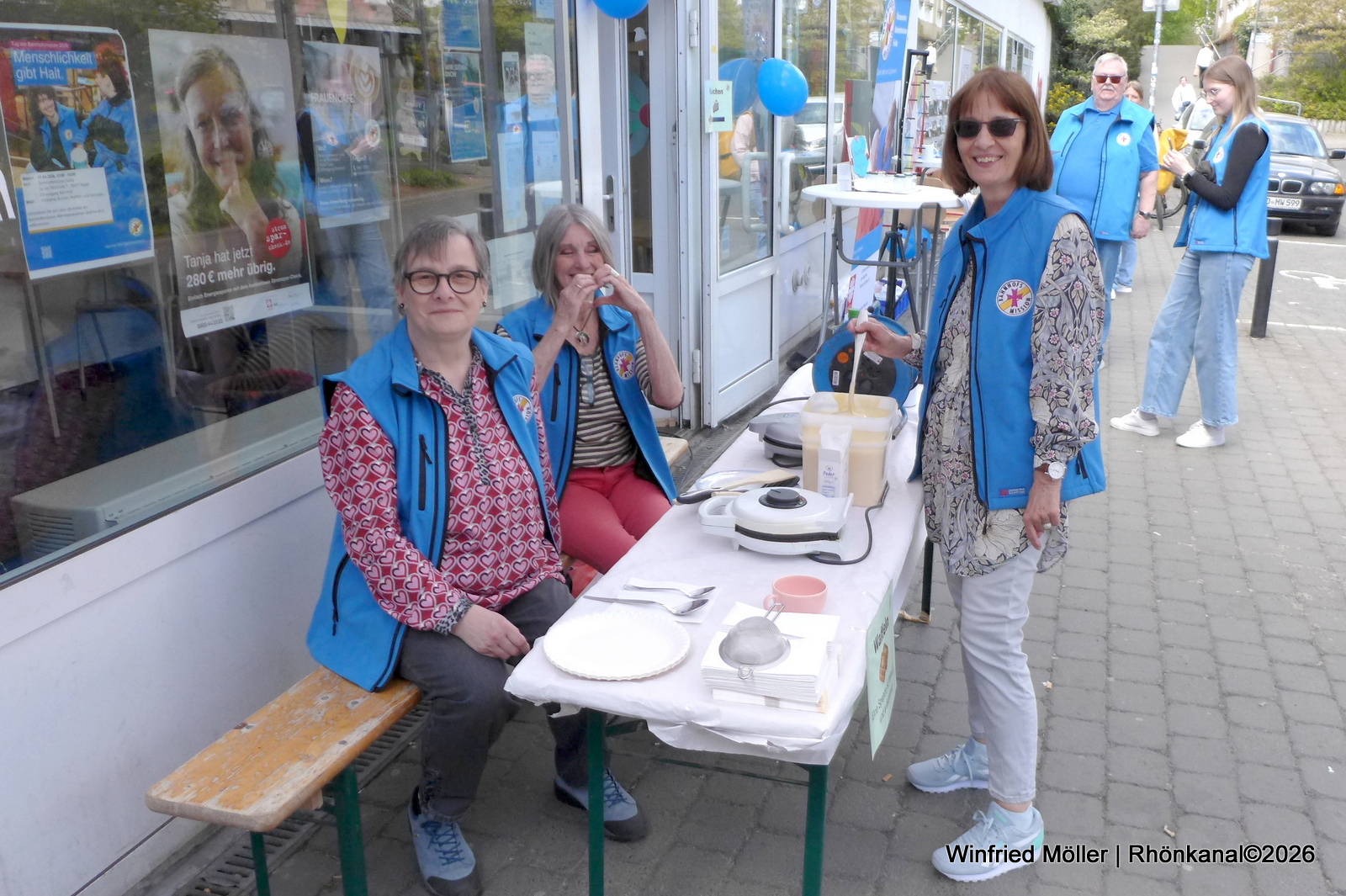 So hatten die Ehrenamtlichen alle Hände voll zu tun, um der Nachfrage der zahlreichen Besucher gerecht zu werden. Viele Reisende, aber auch Schülerinnen und Schüler, sowie Gäste, die regelmäßig die Bahnhofmission aufsuchen, ließen sich Kaffee, Tee und frische Waffeln schmecken.