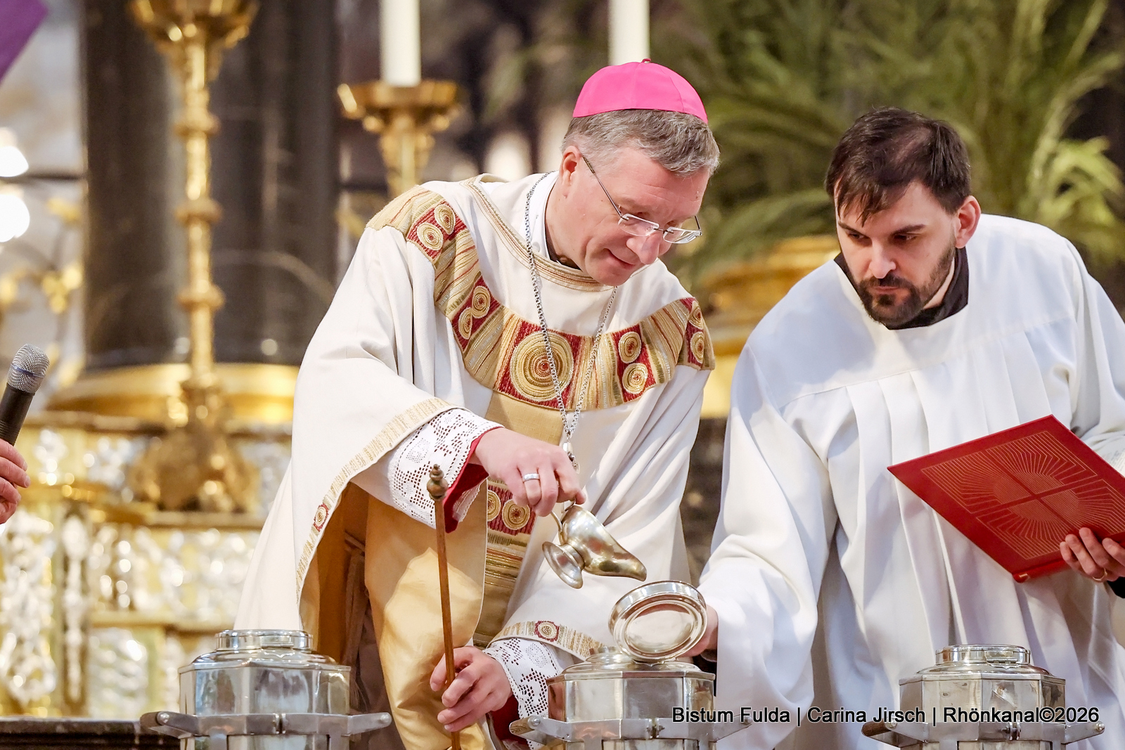 Die Chrisammesse wurde im Fuldaer Dom mit Gläubigen aus dem gesamten Bistum gefeiert. In der Liturgie erneuerten die Priester ihre Weiheversprechen.