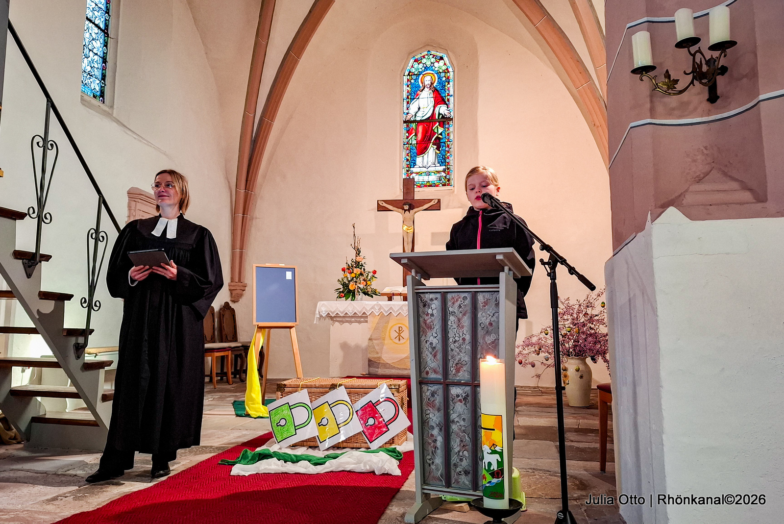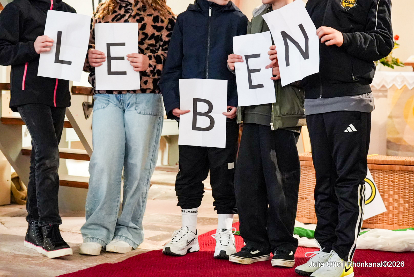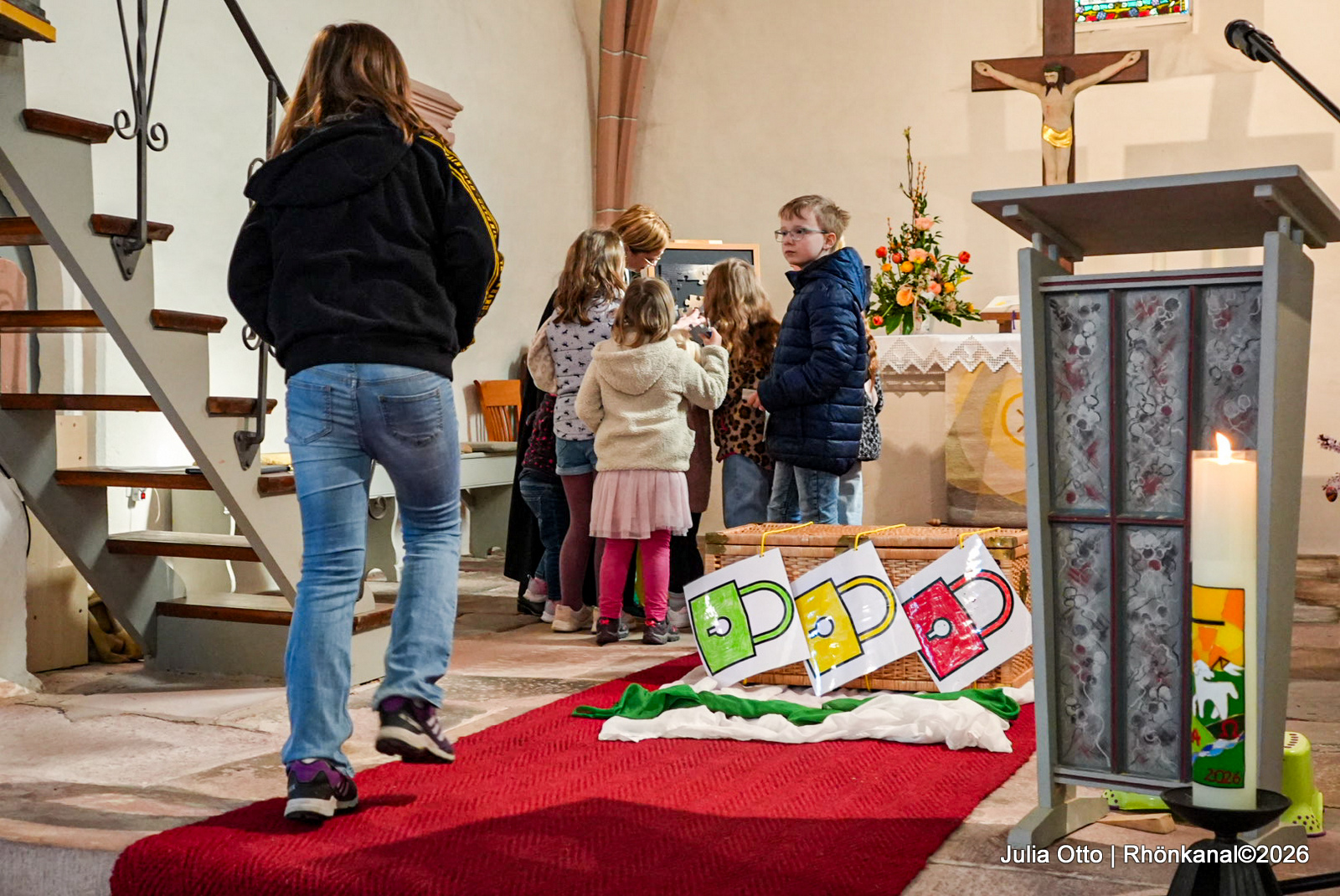 Nun waren wieder die Kinder an der Reihe: Im Kirchenschiff waren fünf gelbe und grüne Umschläge versteckt. Jeder Umschlag enthielt einen Buchstaben, die zusammen das Wort „LEBEN“ ergaben – damit war das dritte Rätsel gelöst. Als das letzte Schloss geöffnet wurde, offenbarte die Kiste schließlich ihr Geheimnis: das strahlende Osterlicht.