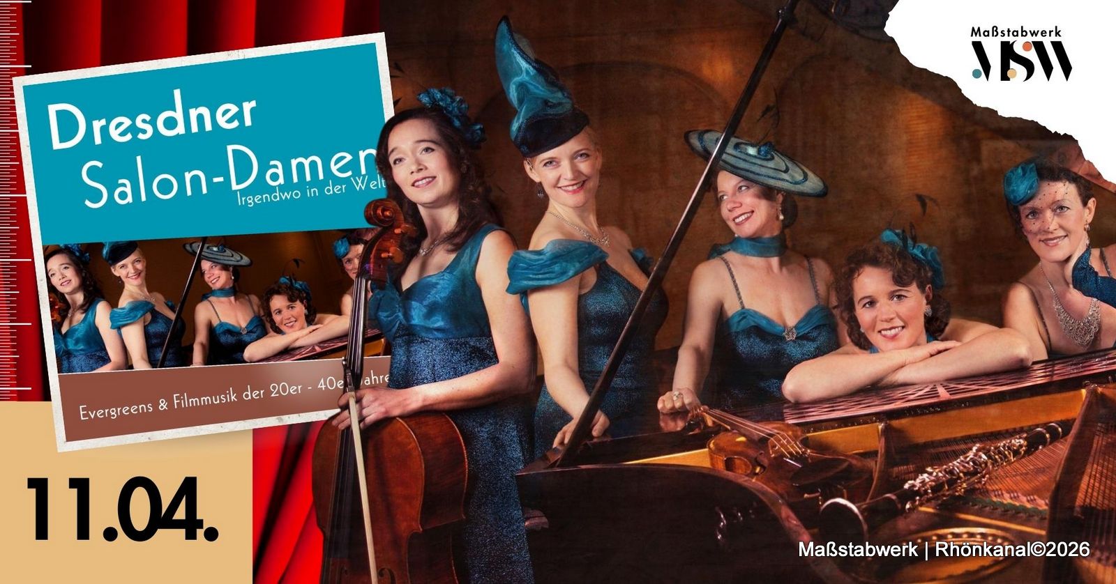 Am Samstag, den 11. April, um 19 Uhr sind die Dresdner Salon-Damen zu Gast und entführen ihr Publikum mit Evergreens und Filmmusik der 20er bis 40er Jahre auf eine stilvolle Zeitreise.