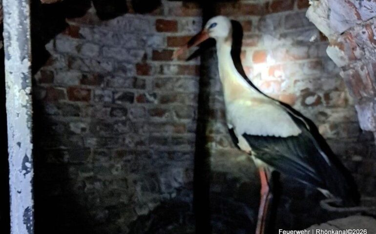 „Sie wäre niemals mehr herausgekommen, weil die Flügelspannweite einfach zu groß ist“, sind sich die Einsatzkräfte sicher. Ein Feuerwehrmann konnte den Storch behutsam mit einer Decke greifen und in eine Transportbox setzen.