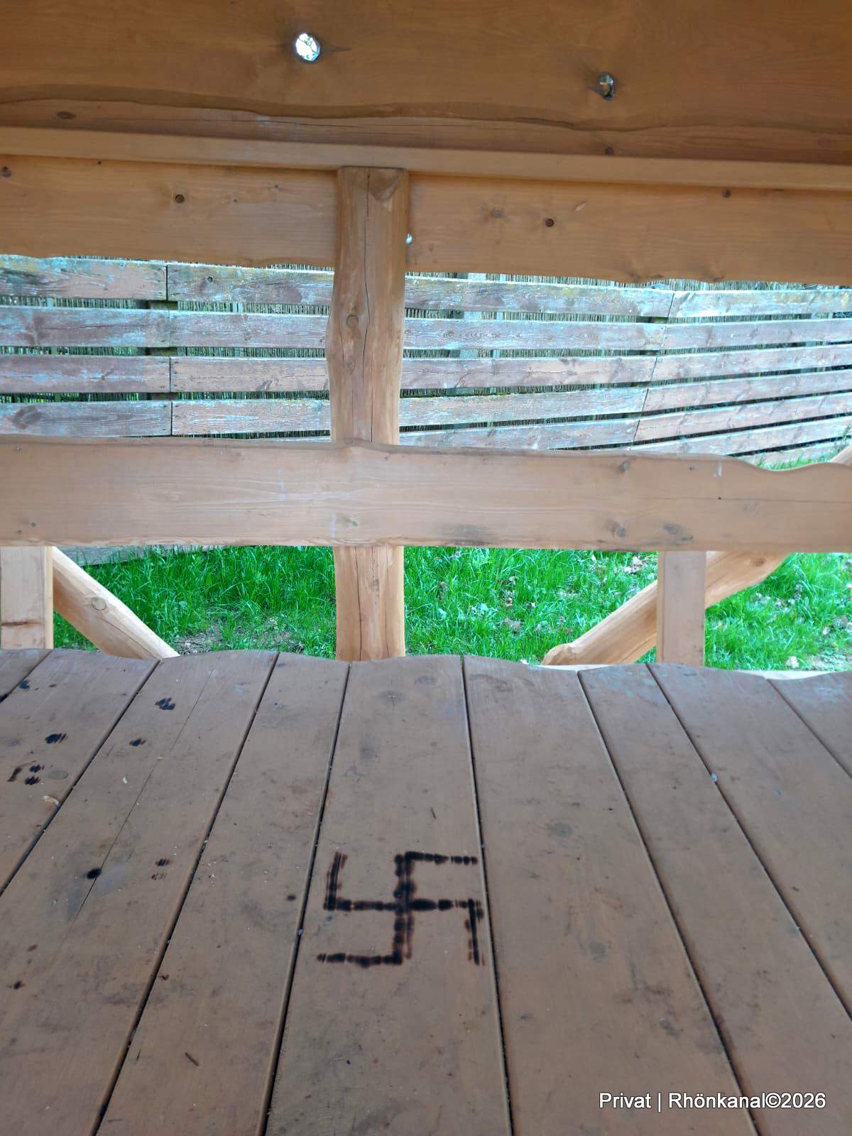 Ein unschöner Vorfall sorgt derzeit in Kaltennordheim für Bestürzung: In einer Rasthütte auf einem Spielplatz wurde ein Hakenkreuz entdeckt. Aufmerksam wurde man darauf, als eine Kindergartengruppe vor Ort war.