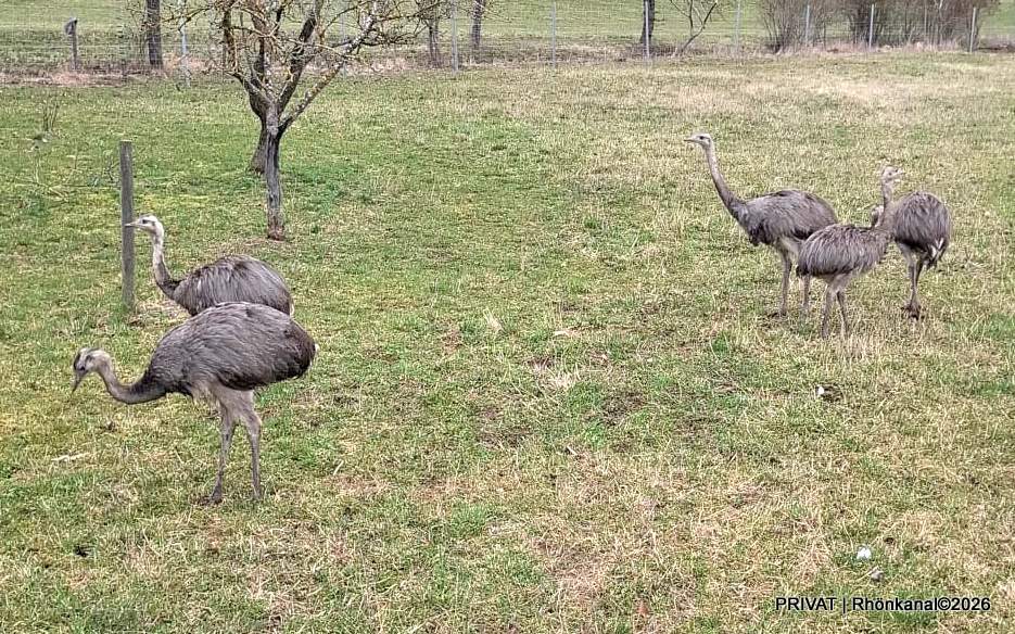 Insgesamt vier Tiere sind ausgebrochen, zwei konnten bereits wieder eingefangen werden – eines bei Fischbach, ein weiteres im Wald in Richtung Neidhartshausen. Die beiden übrigen Nandus sind weiterhin unterwegs.