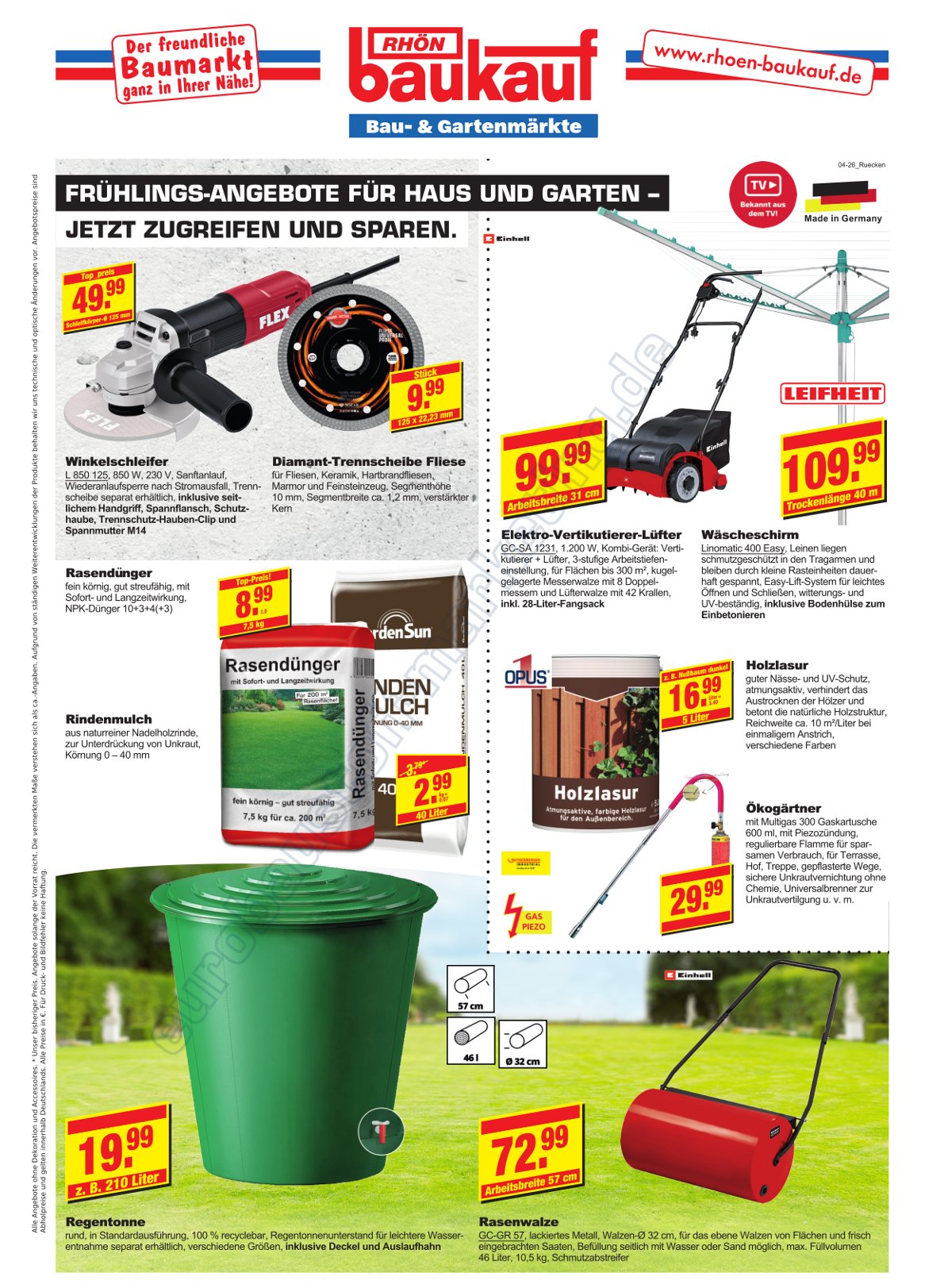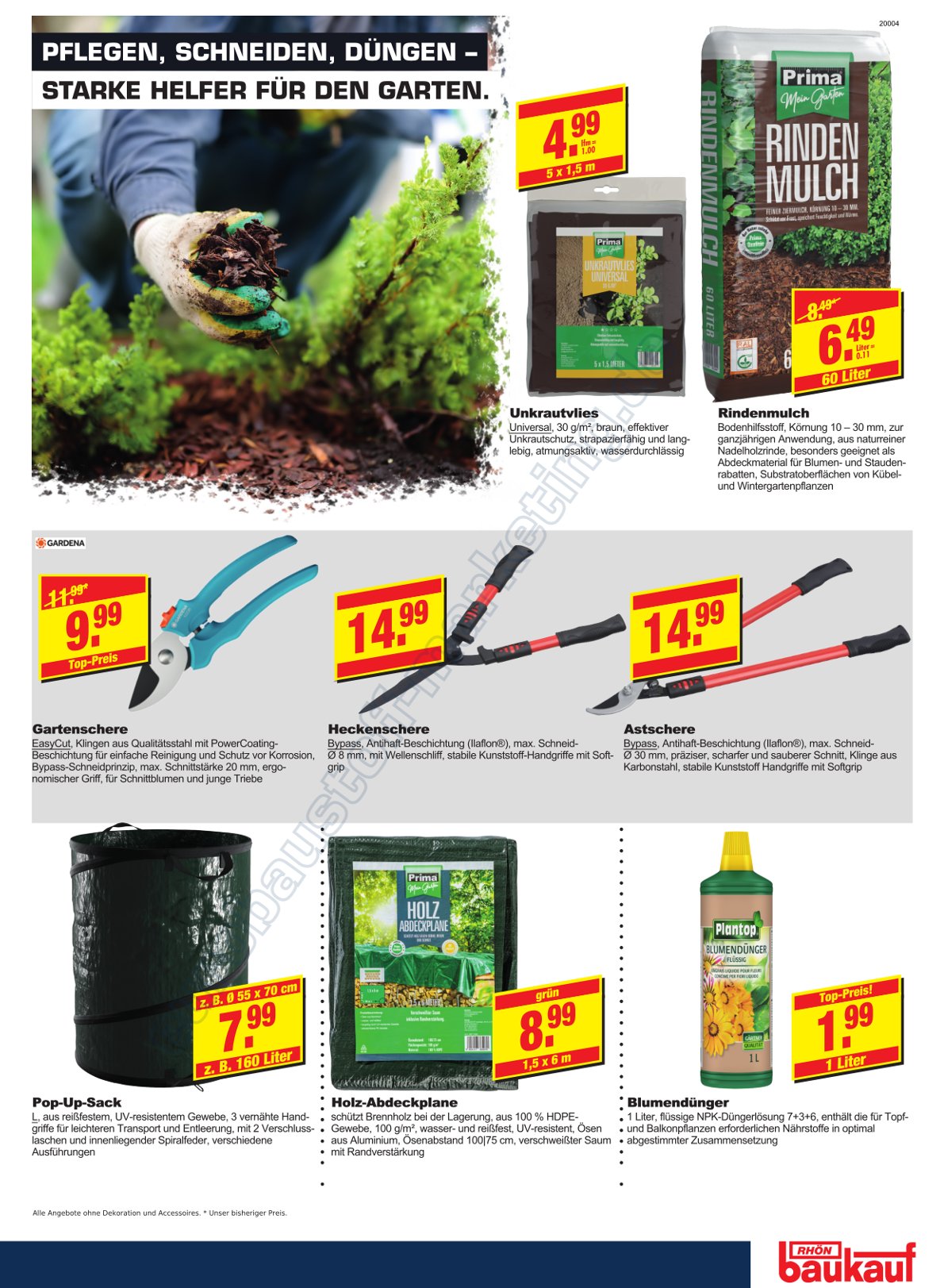 Außenanlagen, Bauelemente, Baustoffe, Eisenwaren, Elektroartikel, Farben, Fliesen, Gartensortimente, Haushaltwaren, Heizungen, Holz, Holzwerkstoffe, Lampen und Leuchtmittel, Sanitär-bedarf, Tapeten, Werkzeuge, Pflanzen und Schnittblumen, Autozubehör und vielen mehr...