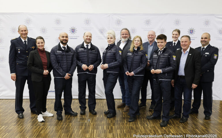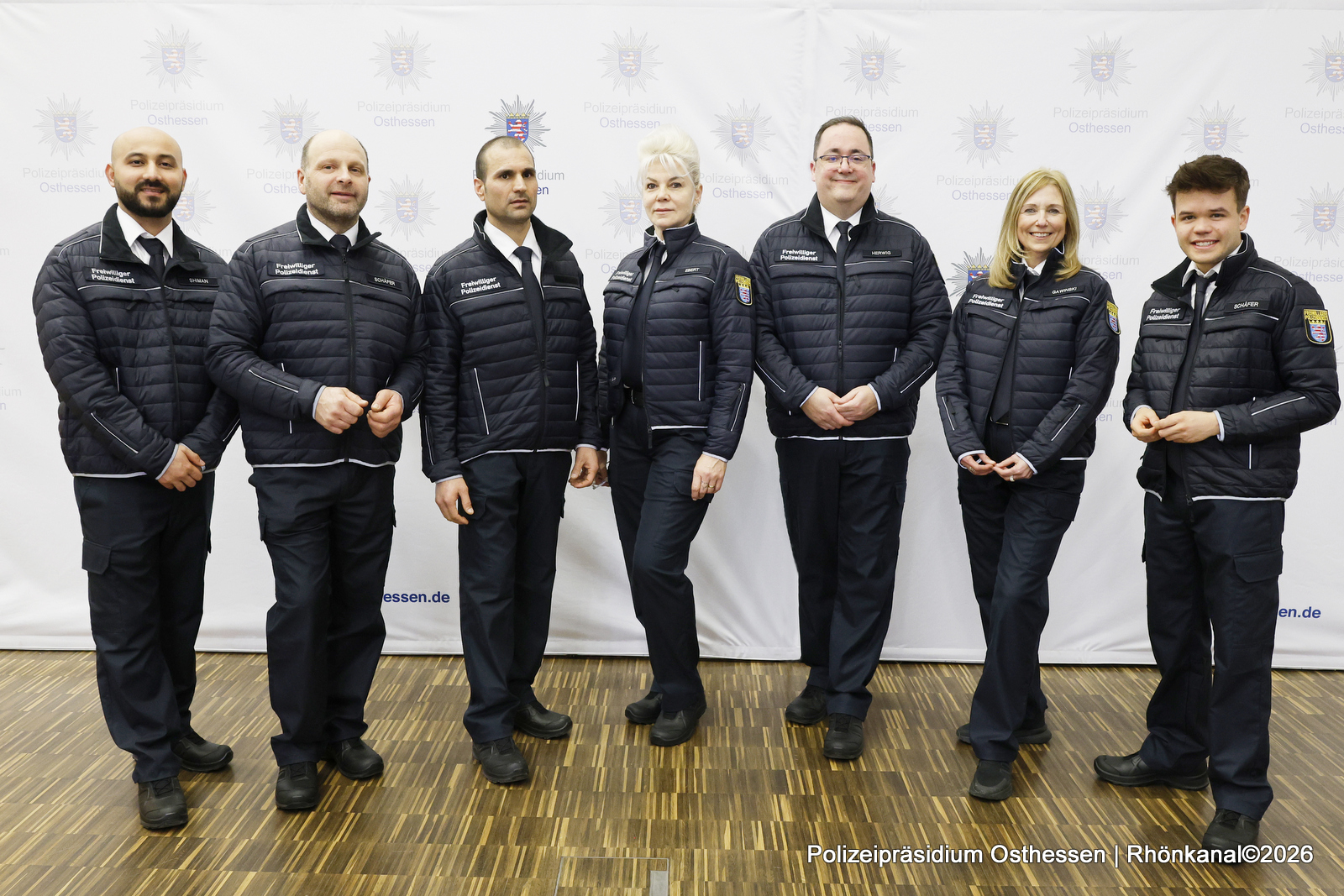 Im Polizeipräsidium Osthessen wurden am 21. März 2026 sieben neue freiwillige Polizeihelferinnen und -helfer feierlich in den Dienst gestellt.