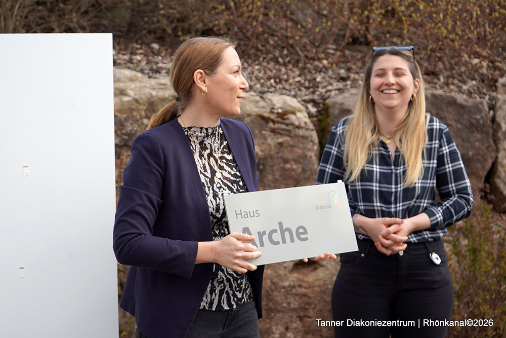 Für die Tagesstätte erhielt stellvertretend Nadja Köhler als Teamleitung von Haus Abraham das Schild „Haus Arche“ und brachte es treffend auf den Punkt: „Die Arche steht für Gemeinschaft – und genau das macht unser Haus Arche aus.“