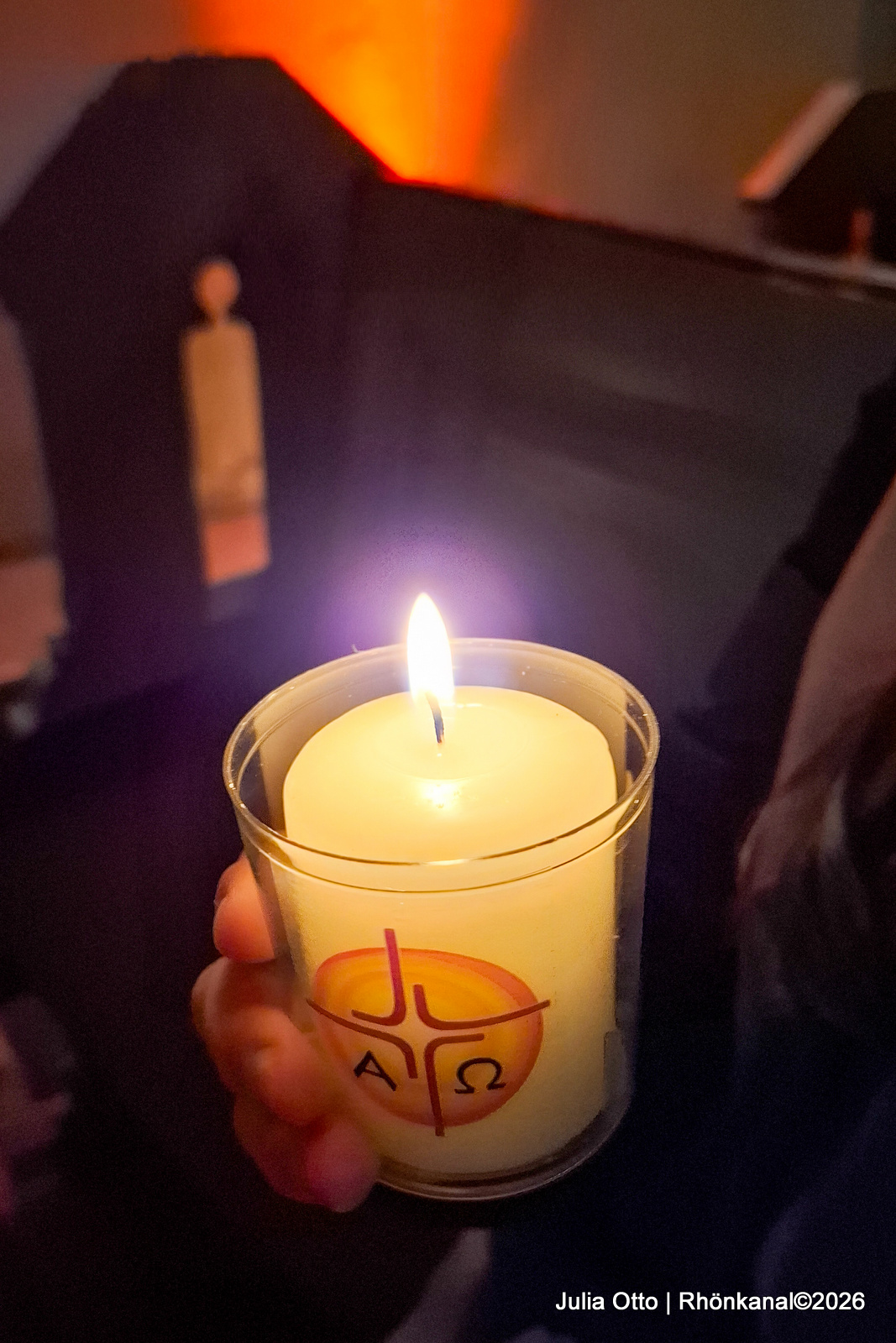 Der Abschluss des Anspiels bot allen, die es wünschten, einen stillen Moment der Zuwendung zur persönlichen Salbung. Jeder, der wollte, erhielt das Salbkreuz mit Mandarinöl auf die Stirn oder in die Handfläche, begleitet von der Verheißung neuen Lebens und des Lichts.