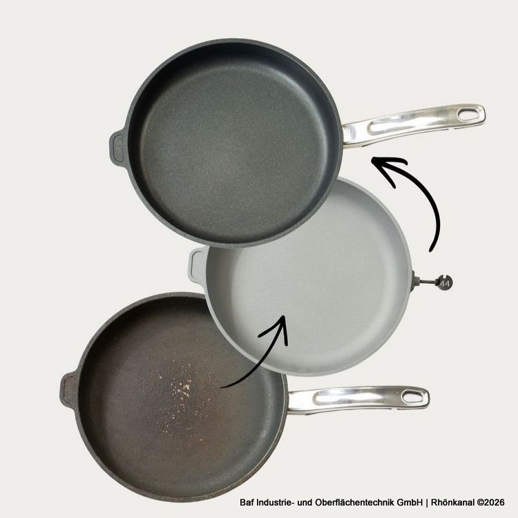 Heute erfährt dieses langjährige Fachwissen eine neue Relevanz: Mit dem Neubeschichtungsservice unter neubeschichtung-pfannen.de gibt BAF Pfannen, Töpfen und Brätern aller Marken eine zweite Chance – nachhaltig, preisgünstig und Made in Germany. Statt eine abgenutzte Lieblingspfanne zu entsorgen, können Verbraucher sie einfach einschicken. Ab 24,95 Euro kommt sie neu beschichtet zurück – wie frisch aus der Manufaktur.