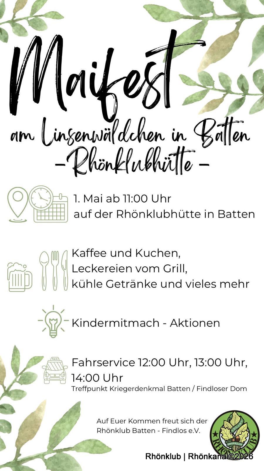 Also, Termin vormerken und am 1. Mai vorbeischauen – es lohnt sich. Der Rhönklub Batten – Findlos freut sich über Ihren Besuch!