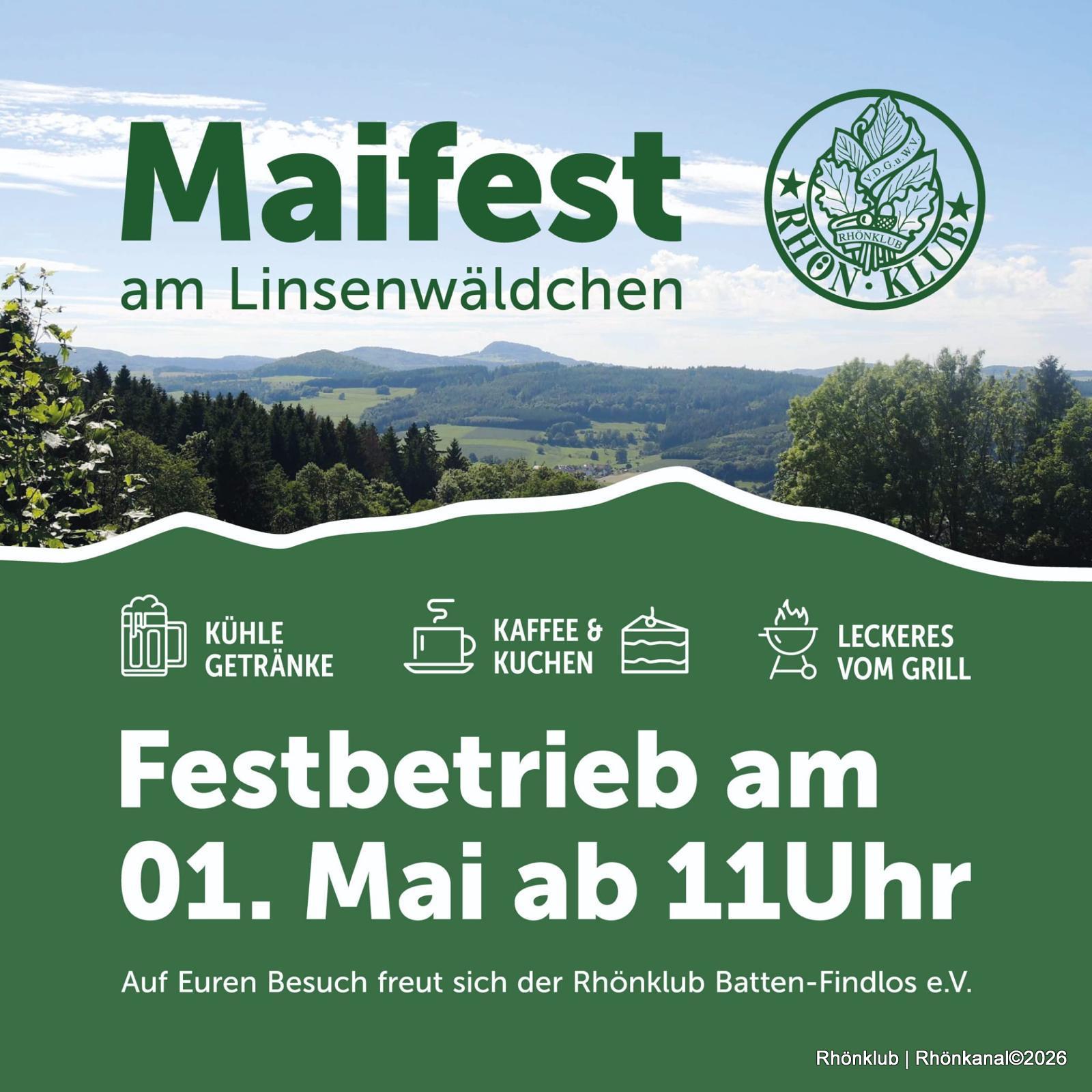 Hier findet am 1. Mai traditionell das Maifest am Linsenwäldchen statt. Ab 11 Uhr startet der Festbetrieb auf der idyllisch gelegenen Rhönklubhütte.