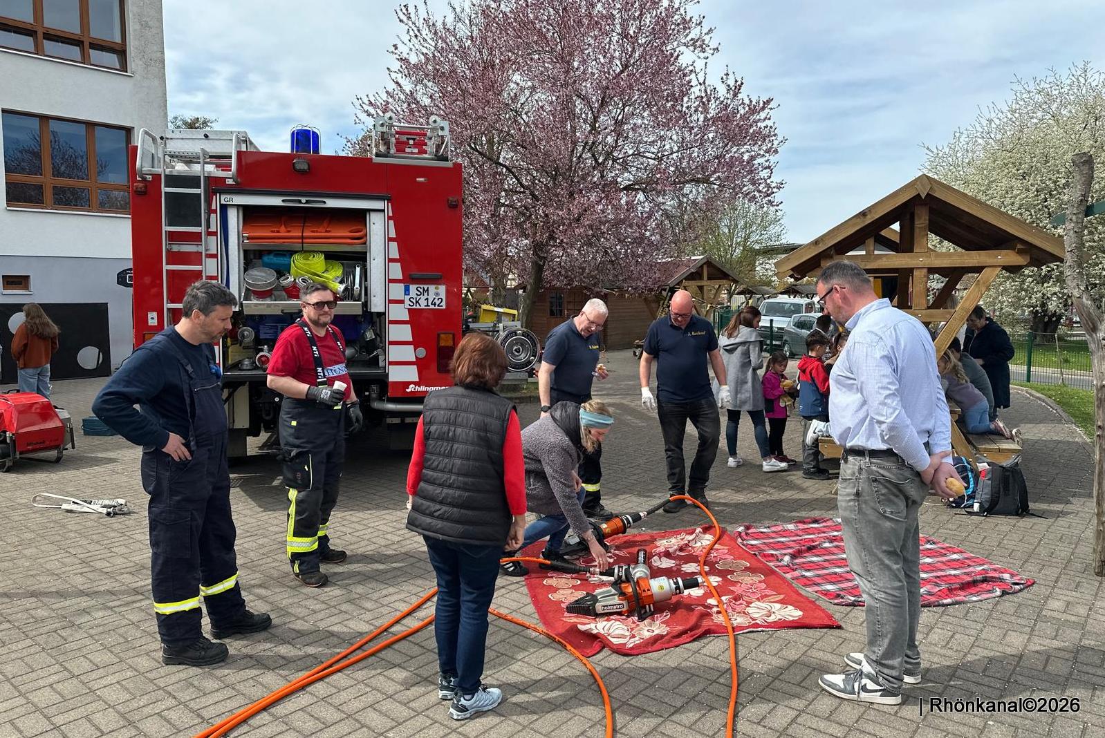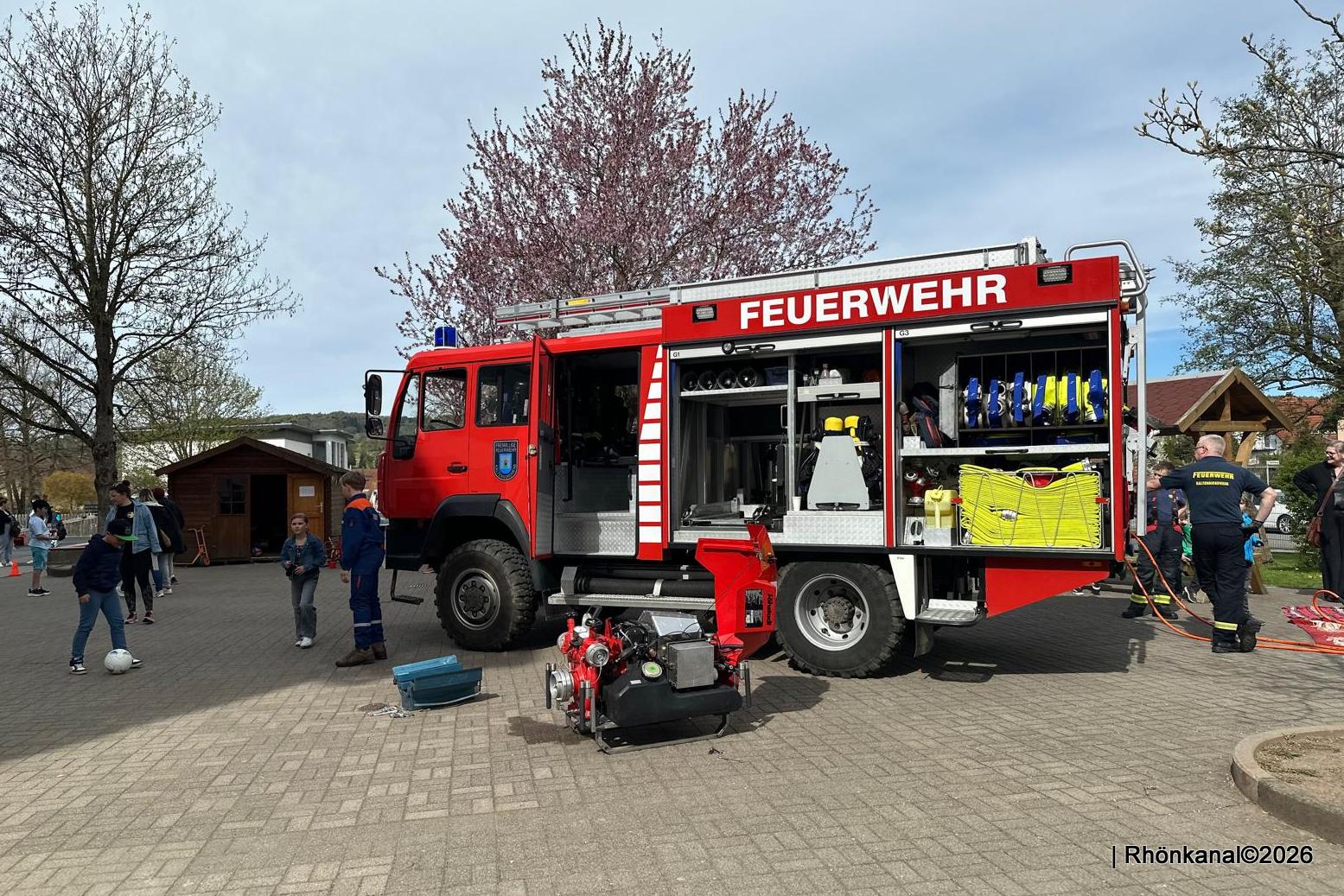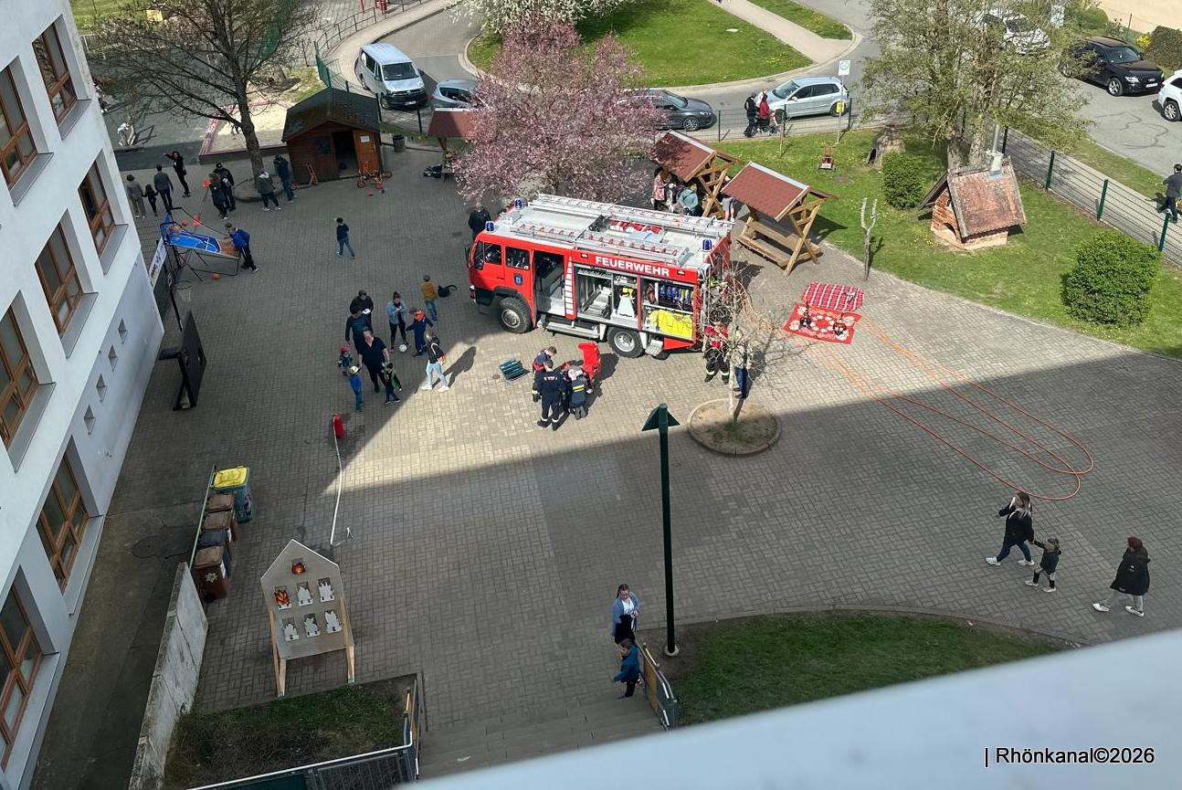 Mit Kuchen, Cocktails, Suppen und Bratwürsten war für das leibliche Wohl bestens gesorgt. Die Freiwilligen Feuerwehren aus Kaltennordheim und Frankenheim, das Forstamt, die Wasserwacht und der Sportverein stellten sich auf dem Schulhof vor.