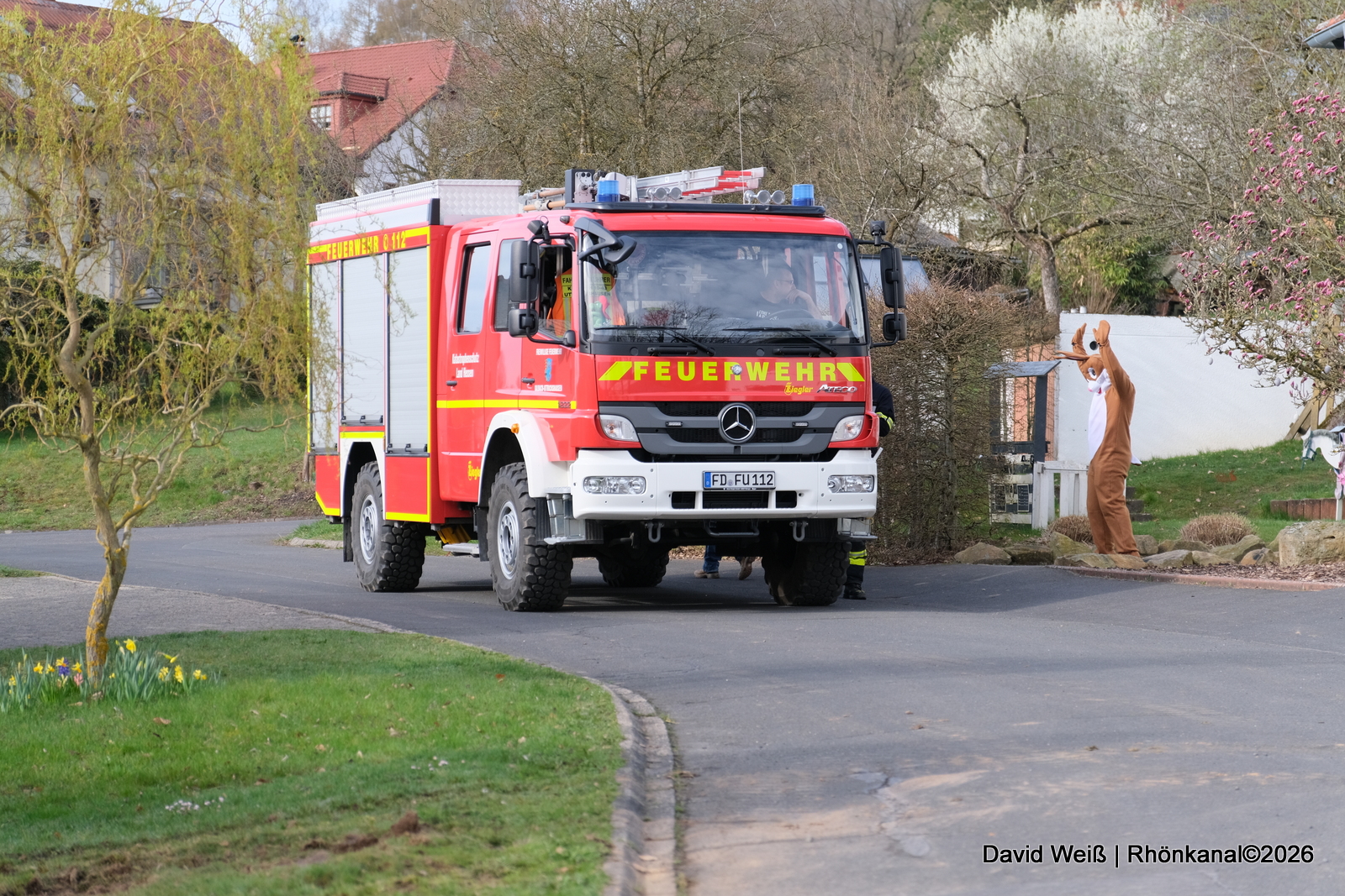 Am Ostersonntagmorgen um 9 Uhr ging es los: Mit einer besonderen Aktion sorgte die Freiwillige Feuerwehr Uttrichshausen dafür, Kinderaugen zum Strahlen zu bringen.