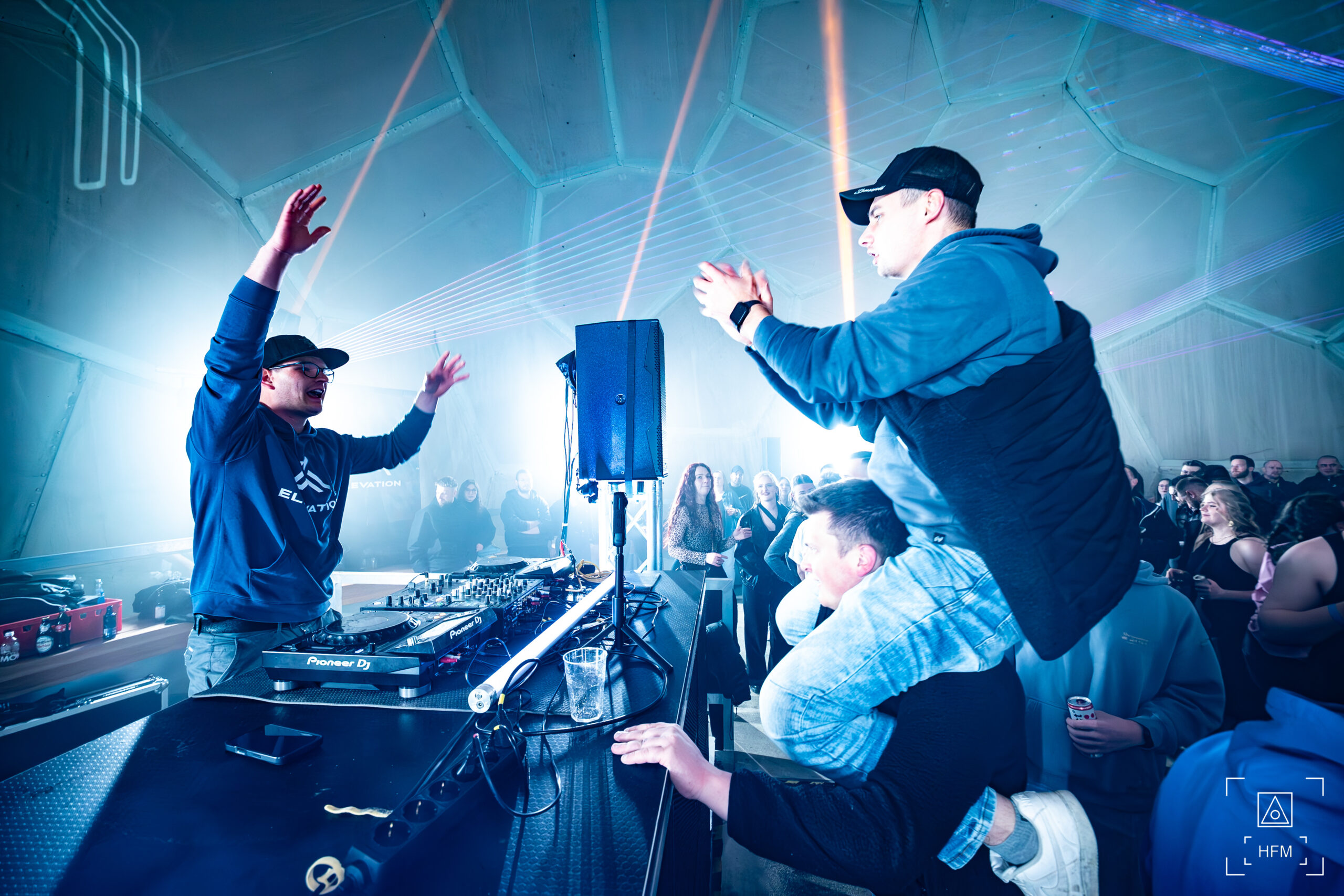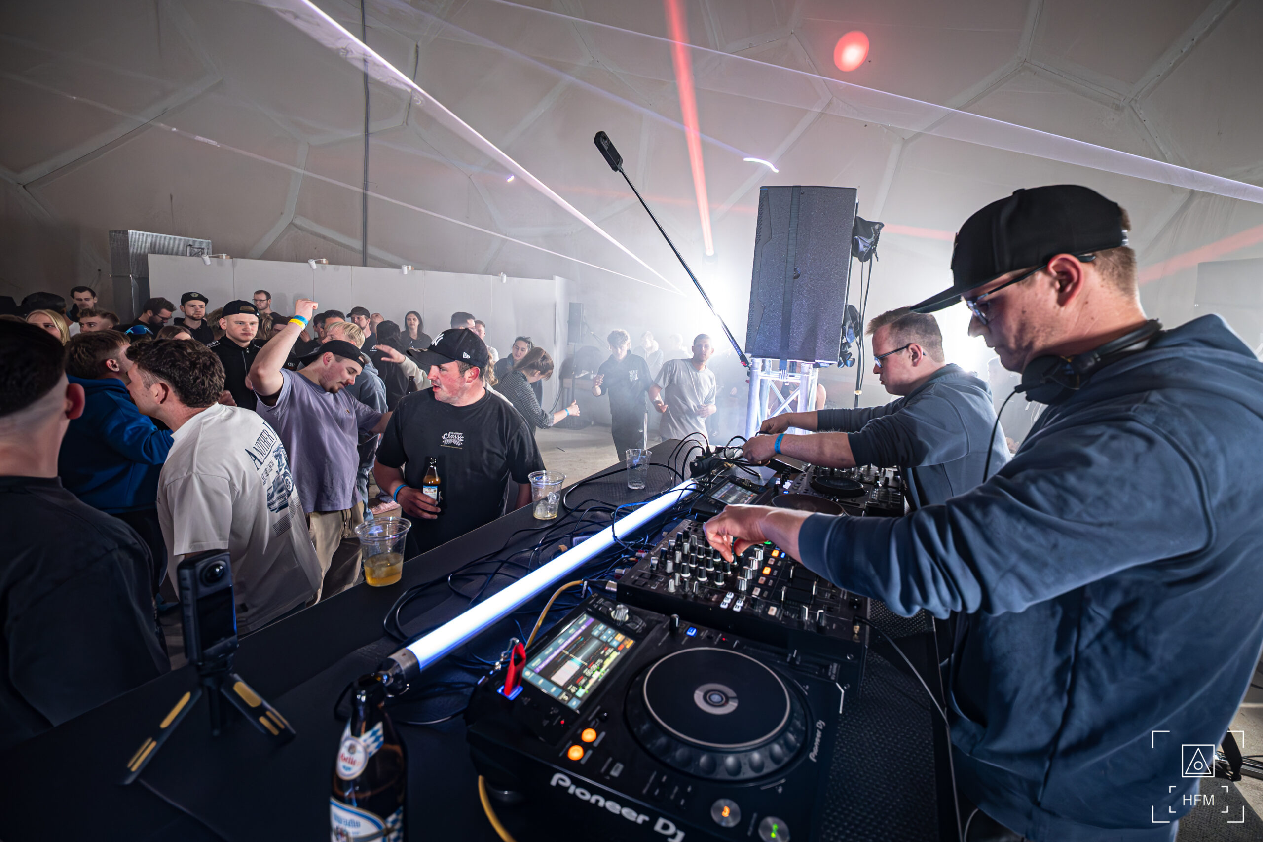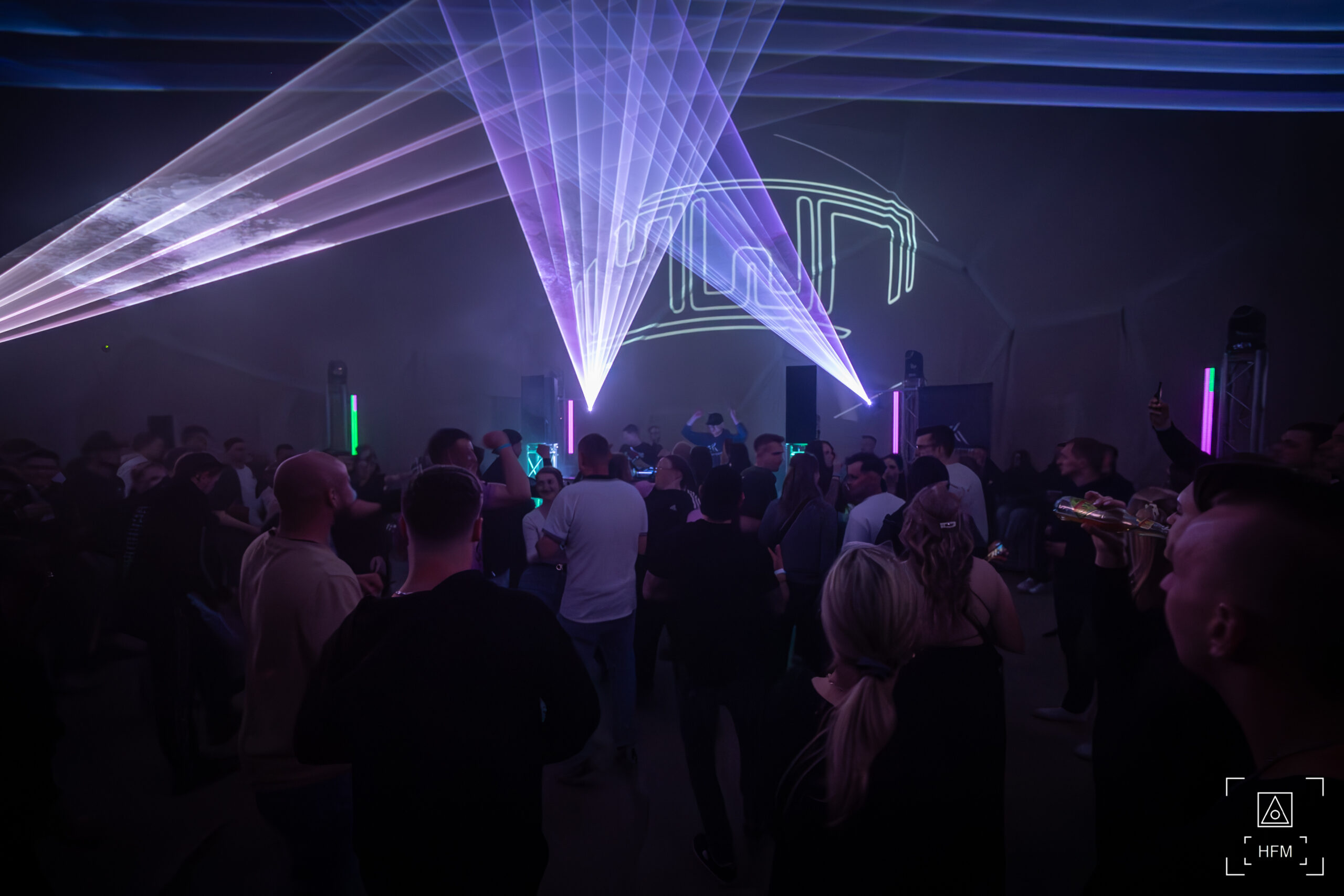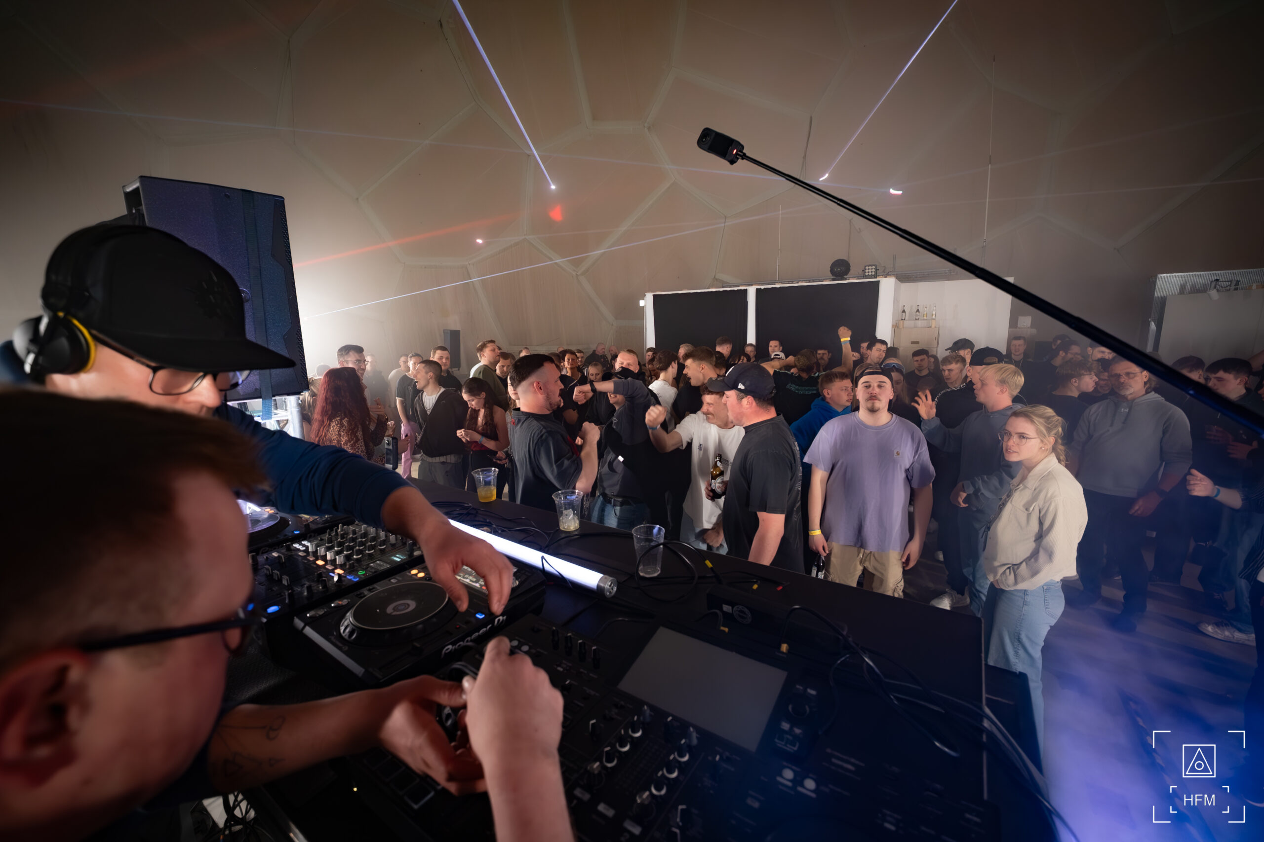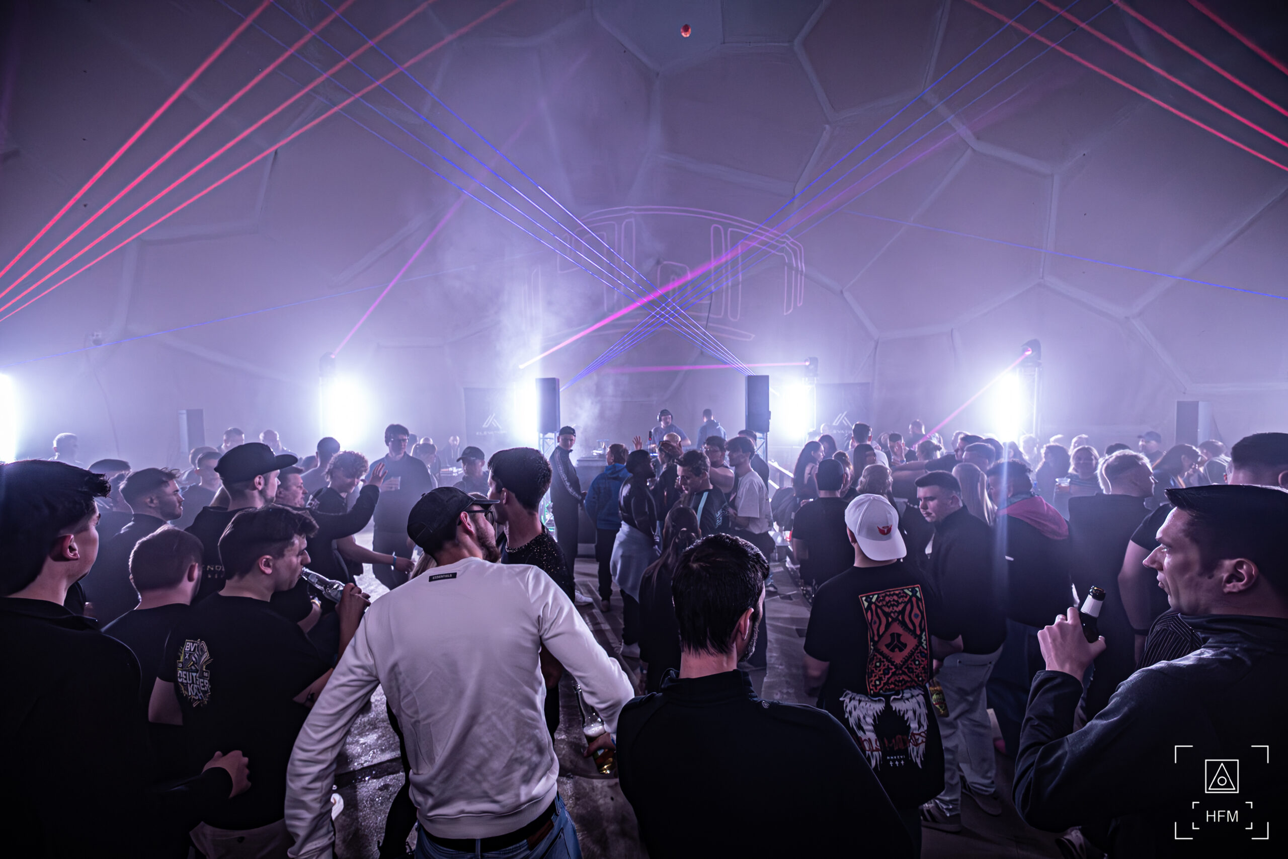 Eine außergewöhnliche Licht- und Lasershow in der Kuppel brachte die Feiermeute zum Staunen. Ein überregionales Line Up, gepaart mit Local Heros, begeisterte die Massen mit treibenden Techno Beats.