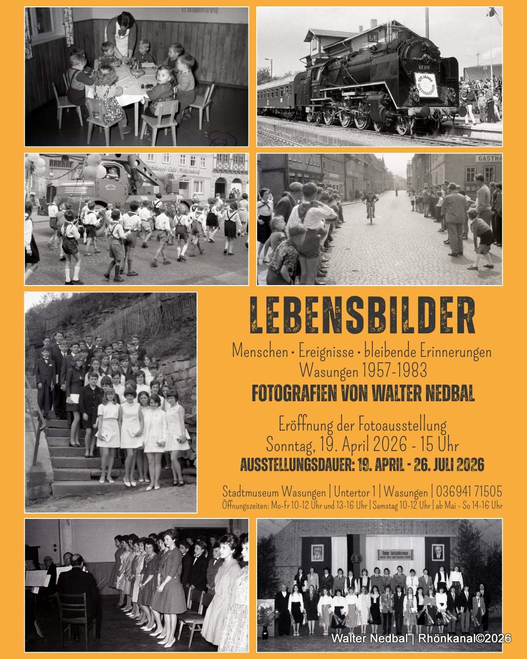 Mit der Ausstellung „LEBENSBILDER - Menschen ~ Ereignisse ~ bleibende Erinnerungen. Wasungen 1957-1983. Fotografien von Walter Nedbal“ eröffnet das Stadtmuseum Wasungen seine erste Ausstellung des Jahres 2026.