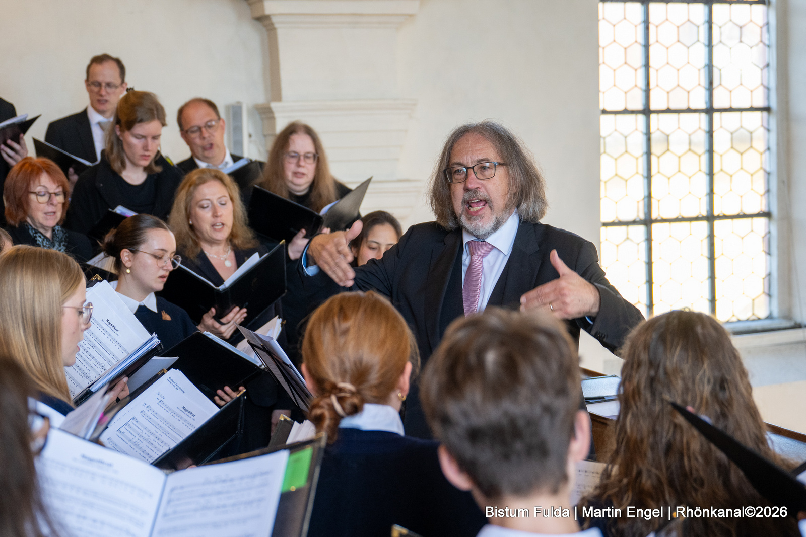 Musikalisch gestalteten Domorganist Max Deisenroth und das Vokalensemble der Chöre am Fuldaer Dom unter der Leitung von Domkapellmeister Franz-Peter Huber das Abendlob. Den anschließenden Empfang im Bonifatiushaus begleitete Frank Tischer musikalisch.