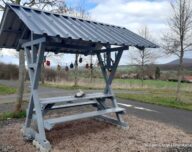 Am Feldatalradweg bei Glattbach, unweit von Dermbach, sorgt derzeit ein liebevoll gestaltetes weiters Highlight für Freude bei Groß und Klein: eine österlich geschmückte, überdachte Sitzgruppe.