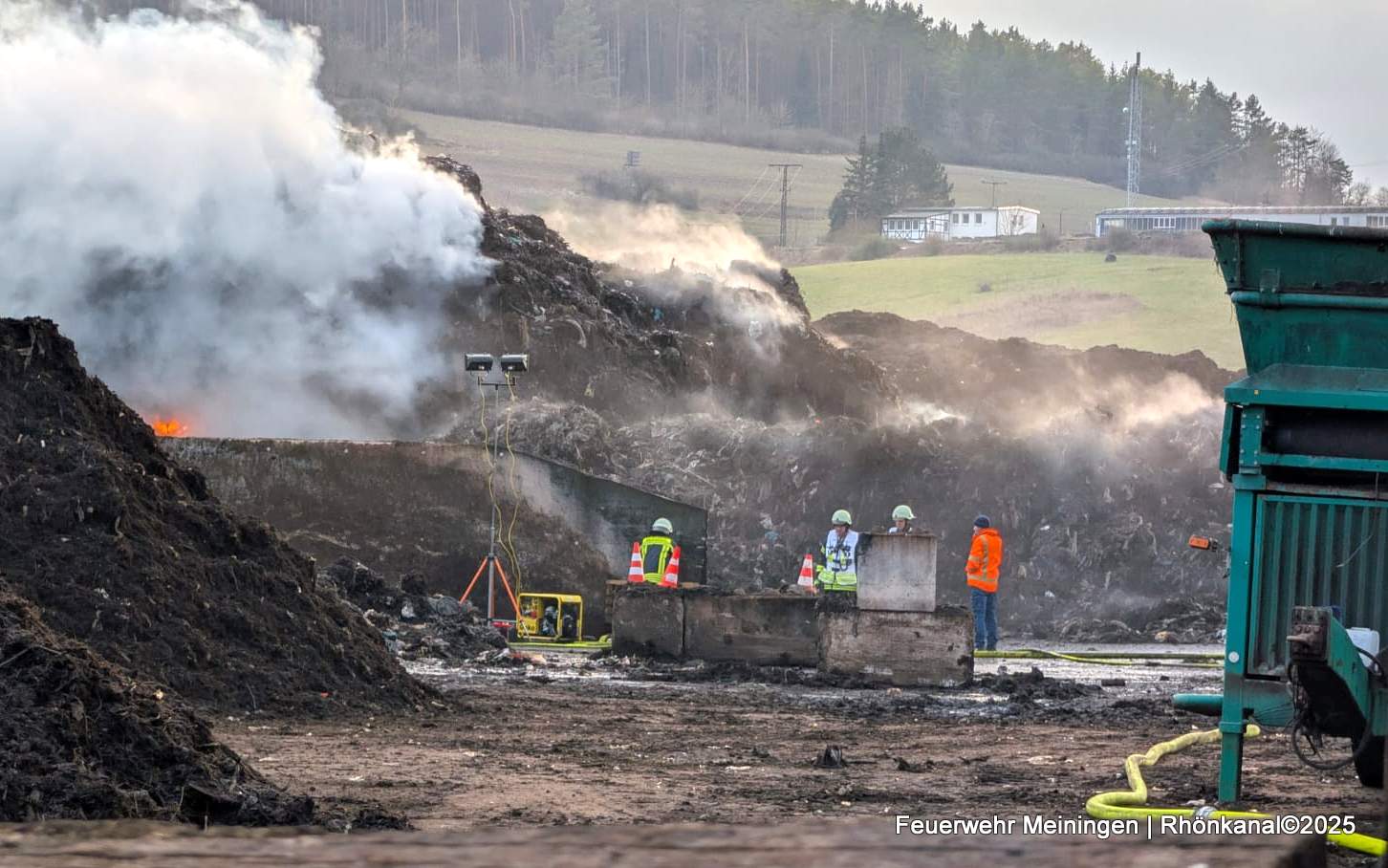 Am Sonntagmorgen, gegen 00.40 Uhr, mussten die freiwilligen Feuerwehren aus Schönau und Bischofsheim zu einem Brand auf dem Grünabfallplatz in Schönau ausrücken.