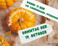 Am Sonntag, den 19. Oktober 2025, lädt die Interessengemeinschaft Pferdsdorf herzlich zum diesjährigen Kürbiswettbewerb statt.
